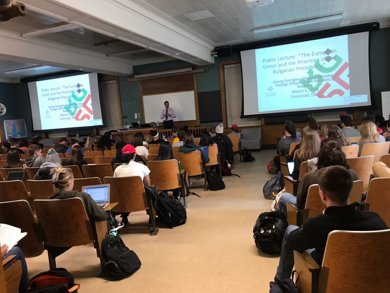 Заместник-министърът на външните работи Георг Георгиев изнесе вчера лекция в градския университет на Синсинати на тема "Приоритетите на България по време на Българското председателство на Съвета на Европейския съюз през 2018 г."