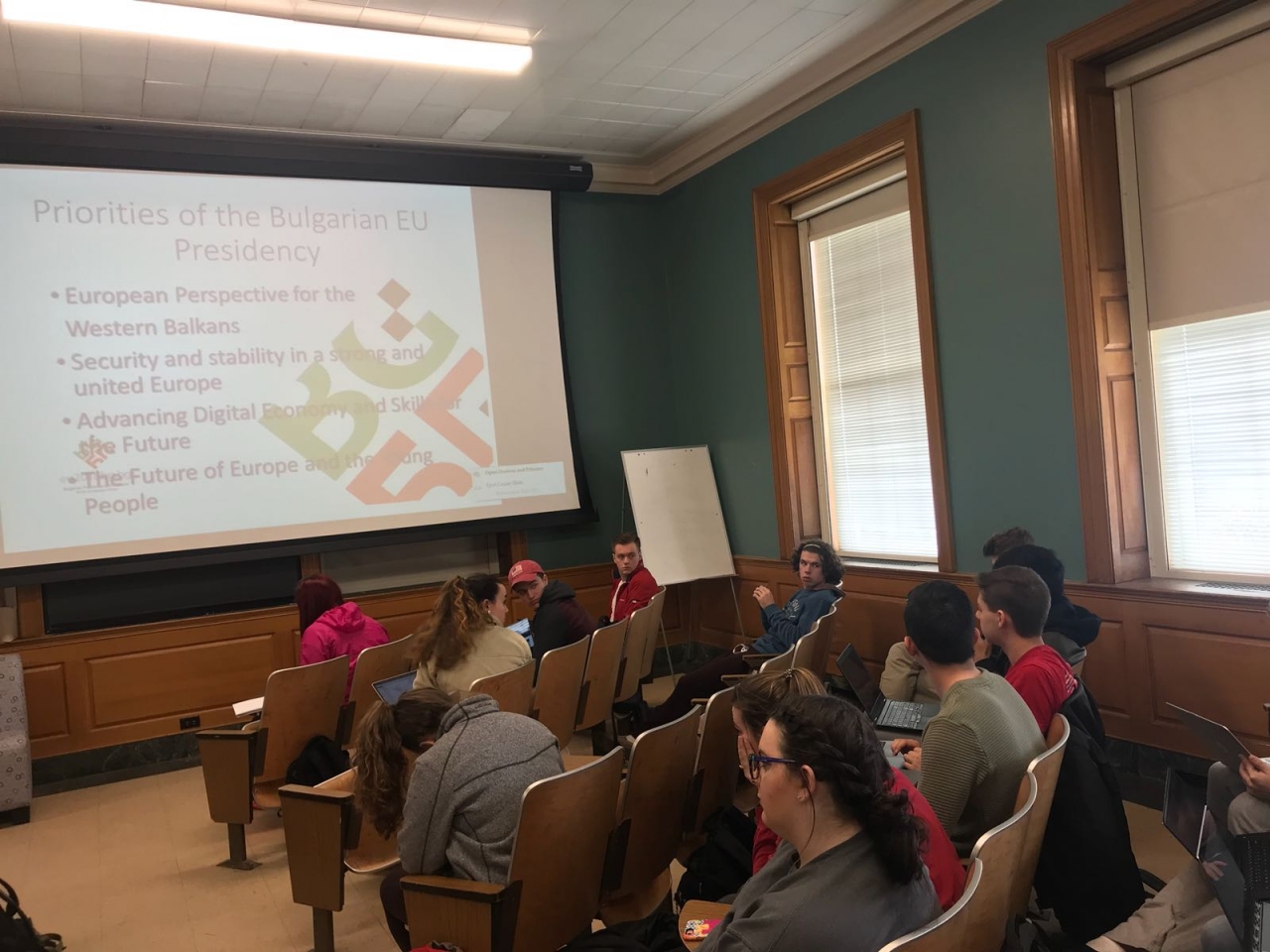 Пред американските студенти Георг Георгиев изтъкна, че за страната ни Председателството представлява предизвикателство и отговорност, защото в този период предстоят много важни решения, които касаят бъдещето на Общността като Брекзит. "Нашата държава се приседини към Съюза преди 10 години, а днес вече можем да участваме във формирането на политиките му в ключови сфери като икономика и финанси, миграция, сигурност и енергетика", подчерта заместник-министър Георгиев.