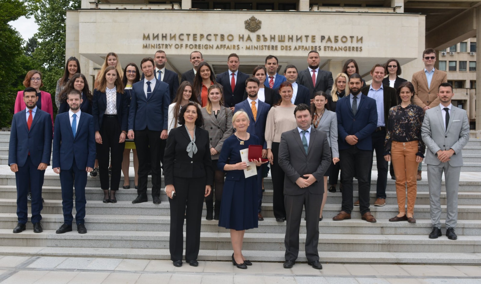 Преди церемонията по награждаване настоящият курс стажант-аташета в МВнР „Стоян Петров-Чомаков“ и студенти от катедра „Европеистика“ на Софийския университет имаха удволствието да участват в дискусия с проф. Шикова за бъдещето на Европейския съюз, кръговата икономика и Зеления пакт, както и перспективите пред европейската интеграция.