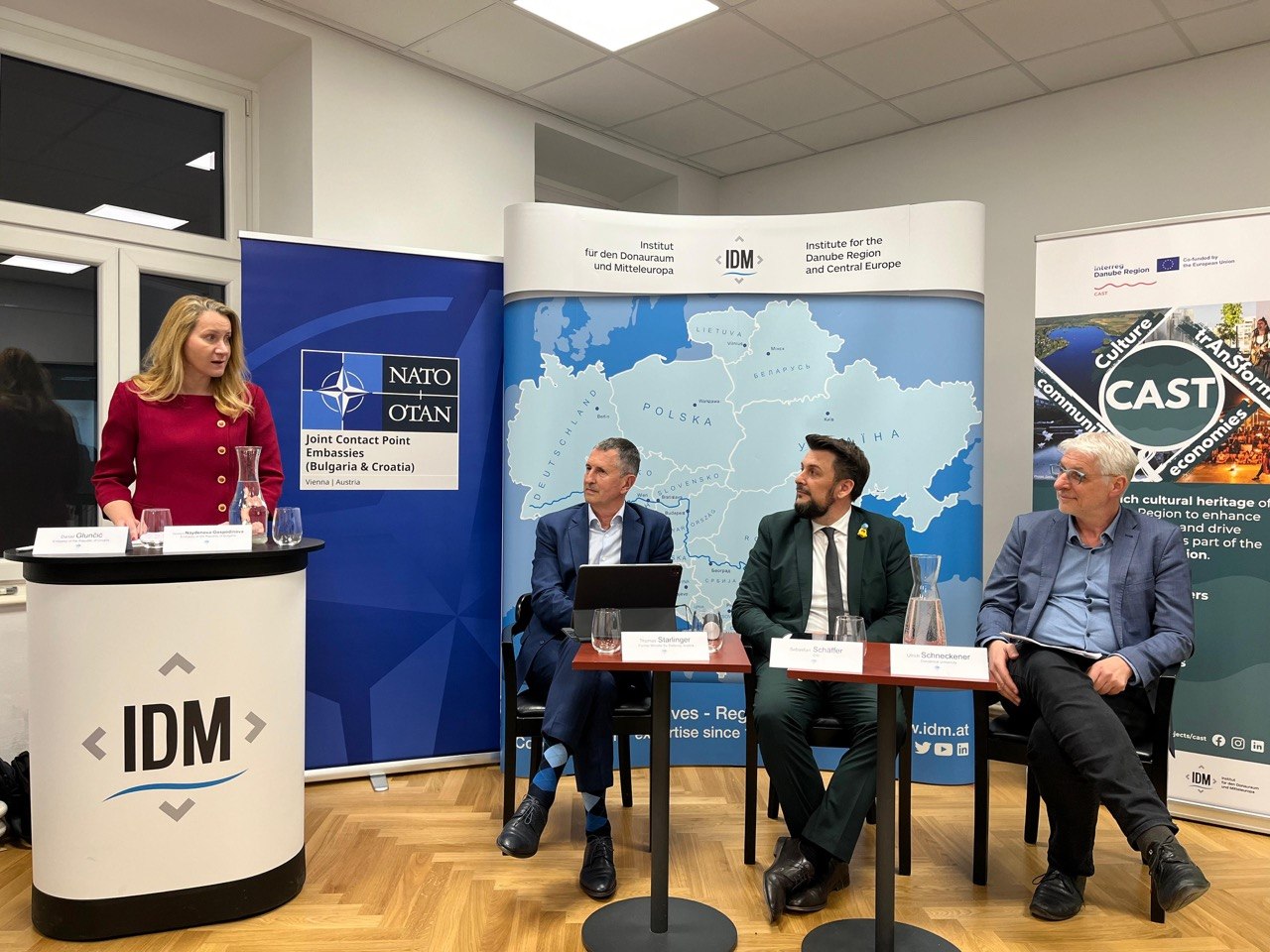 На 25 март 2025 г. Посолството на Република България във Виена и Посолството на Република Хърватия във Виена, в качеството си на посолства за контакт на НАТО (NATO CPE) в Република Австрия, съвместно с Института за Дунавския регион и Централна Европа /Institut für den Donauraum und Mitteleuropa (IDM)/, организираха панелна дискусия на тема „От предизвикателство към способност: споделена сигурност в променящата се Европа“.