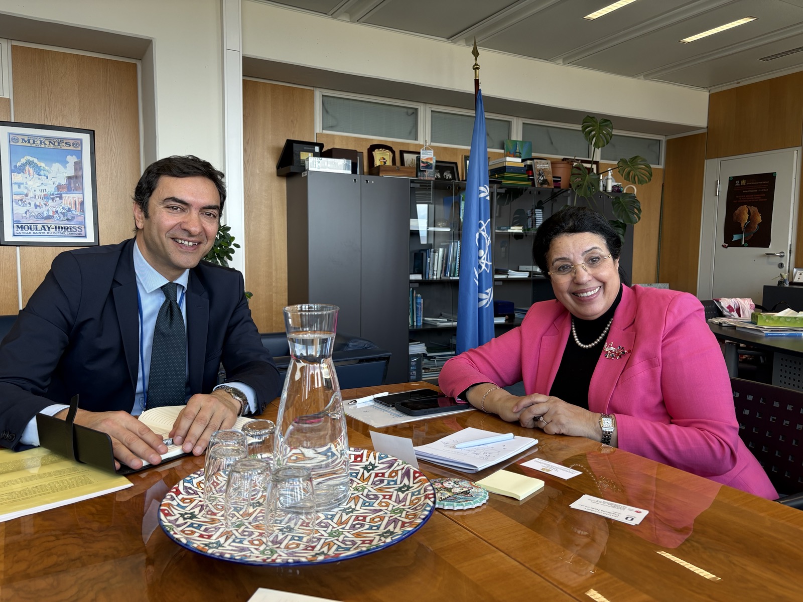 От своя страна г-жа Мохтар представи текущите инициативи на МААЕ в областта на ядрените технологии и отбеляза потенциала на българските организации да се утвърдят като регионални центрове за сътрудничество в сферите на медицината, земеделието и управлението на водите. Тя благодари на България за ангажимента към първата знакова инициатива на генералния директор на МААЕ – ZODIAC.