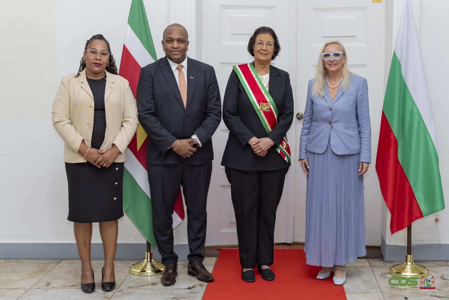 Посланикът на Република България във Федеративна република Бразилия, акредитиранa и за Република Суринам, Н. Пр. Елеонора Димитрова връчи акредитивните си писма на президента на Република Суринам Дженифър Гирлингс-Симонс на церемония, състояла се на 12 март 2026 г. в Президентския дворец в Парамарибо.
