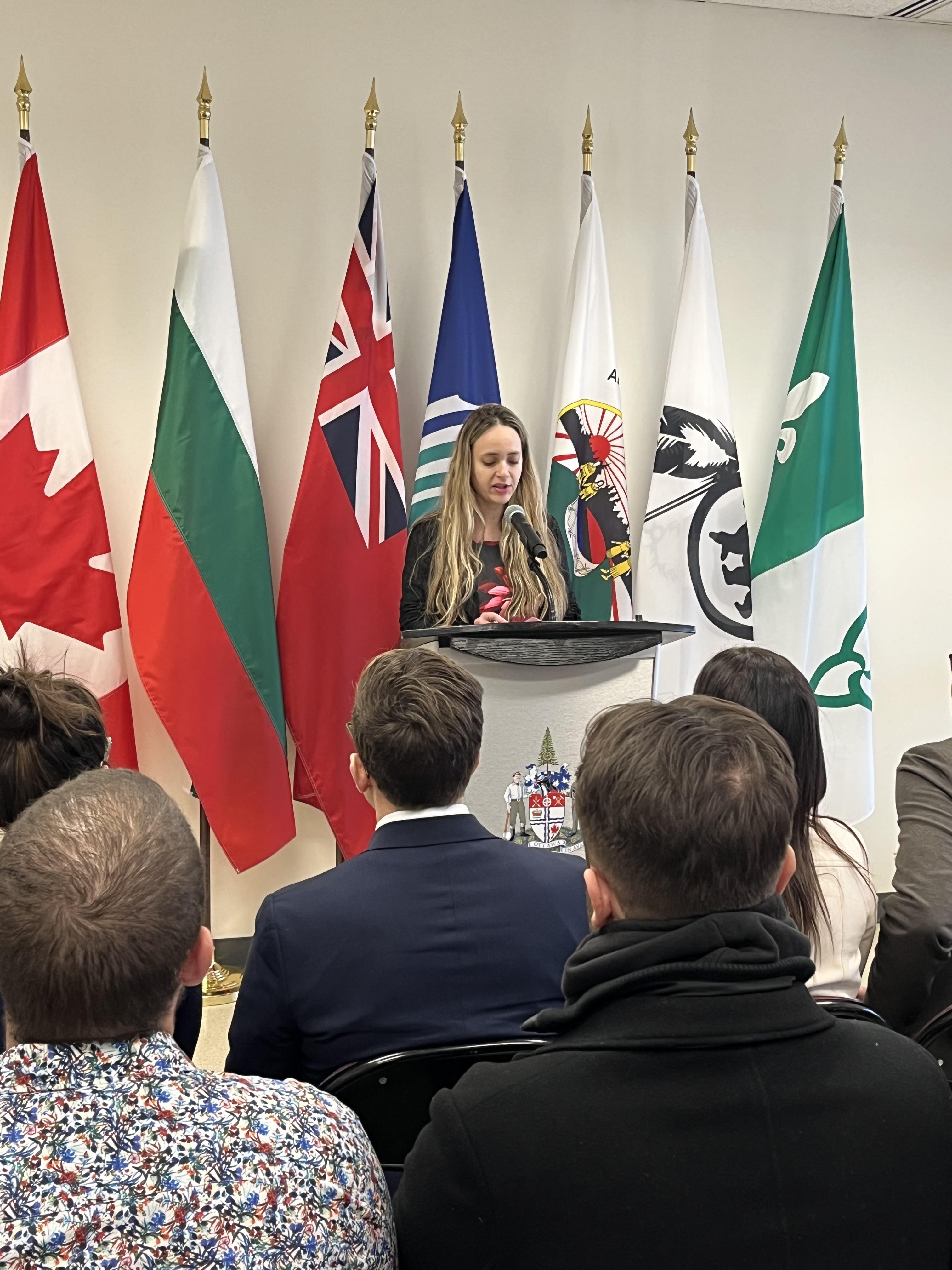 Водещ на церемонията бе г-жа Ромина Ченчева, член на борда на директорите на Българското дружество в Столичния регион Отава-Гатино и представител на младите български професионалисти в канадската столица.