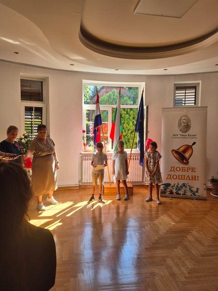 Учениците от първи до четвърти клас под ръководството на учителката Мая Джурджиновски поздравиха гостите с рецитал от български стихотворения. В тържеството онлайн се включи със стихотворение и ученичка от Сараево. Официалната част завърши с биене на училищния звънец от директора на училището Иглика Касабова и ритуал с менче с вода и китка здравец, за да върви учението на децата „по вода“.