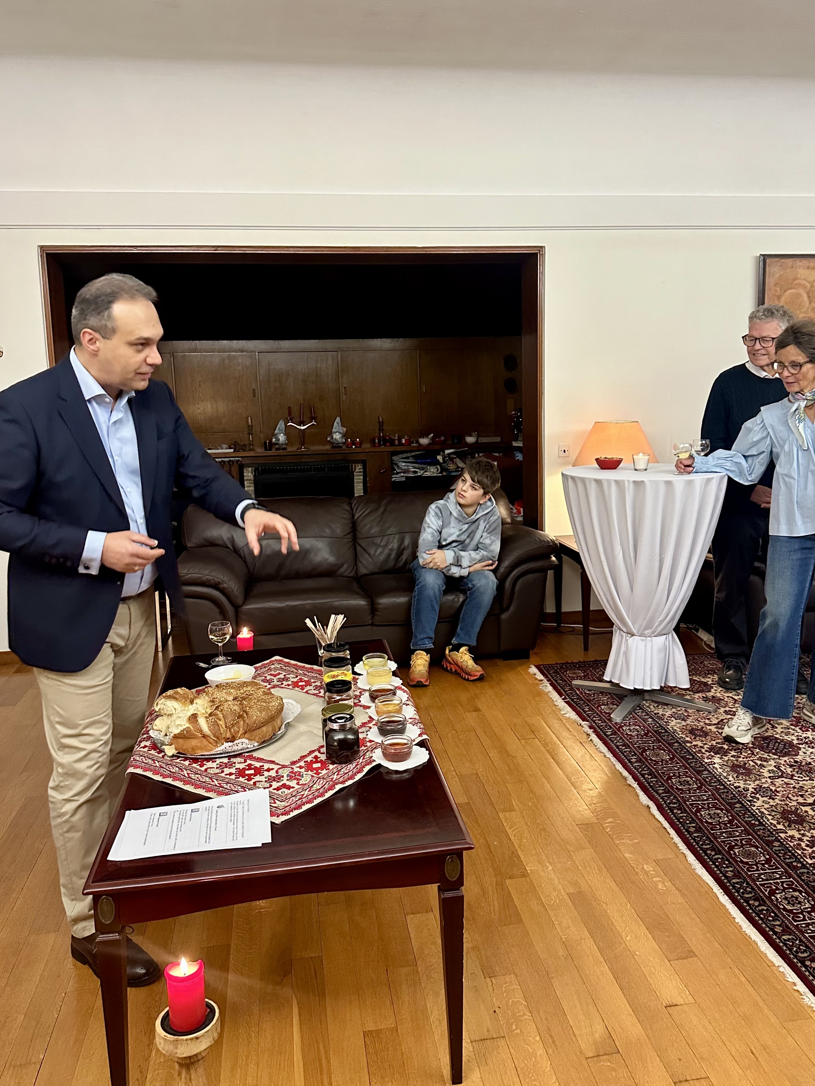 За втора поредна година резиденцията на българския посланик в Дания бе домакин на предколедно парти за съседите. Многобройните гости бяха посрещнати с погача по стара българска традиция.