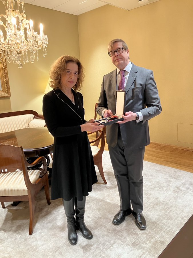 Връчване на държавно отличие на извънредния и пълномощен посланик на Република България в Република Финландия Нина Симова
