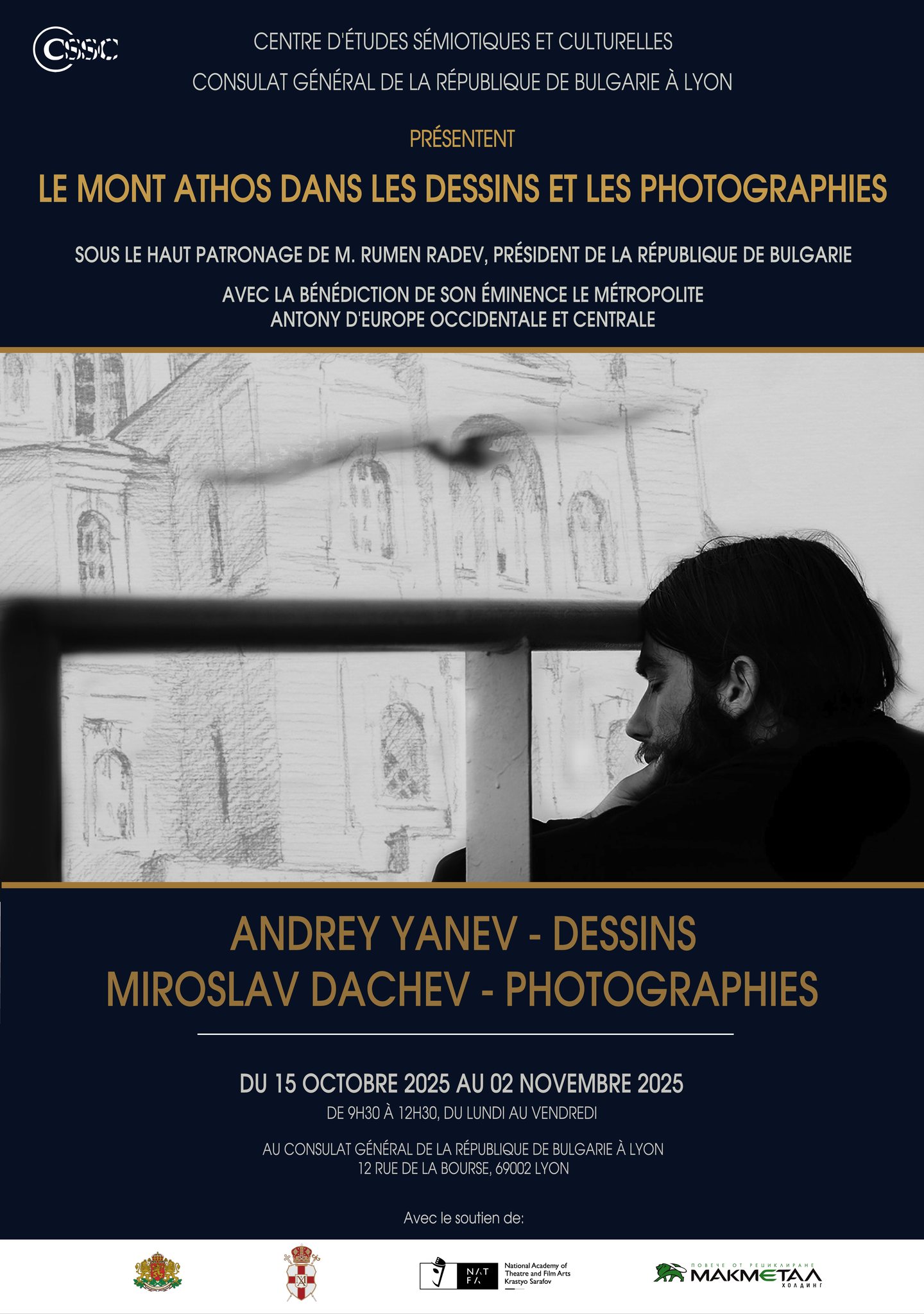Изложбата „Атон в рисунки и фотографии“ бе представена в Генералното консулство на Република България в Лион. Официалното откриване на експозицията, посветена на духовното и културно наследство на полуострова, се проведе на 15 октомври 2025 г.