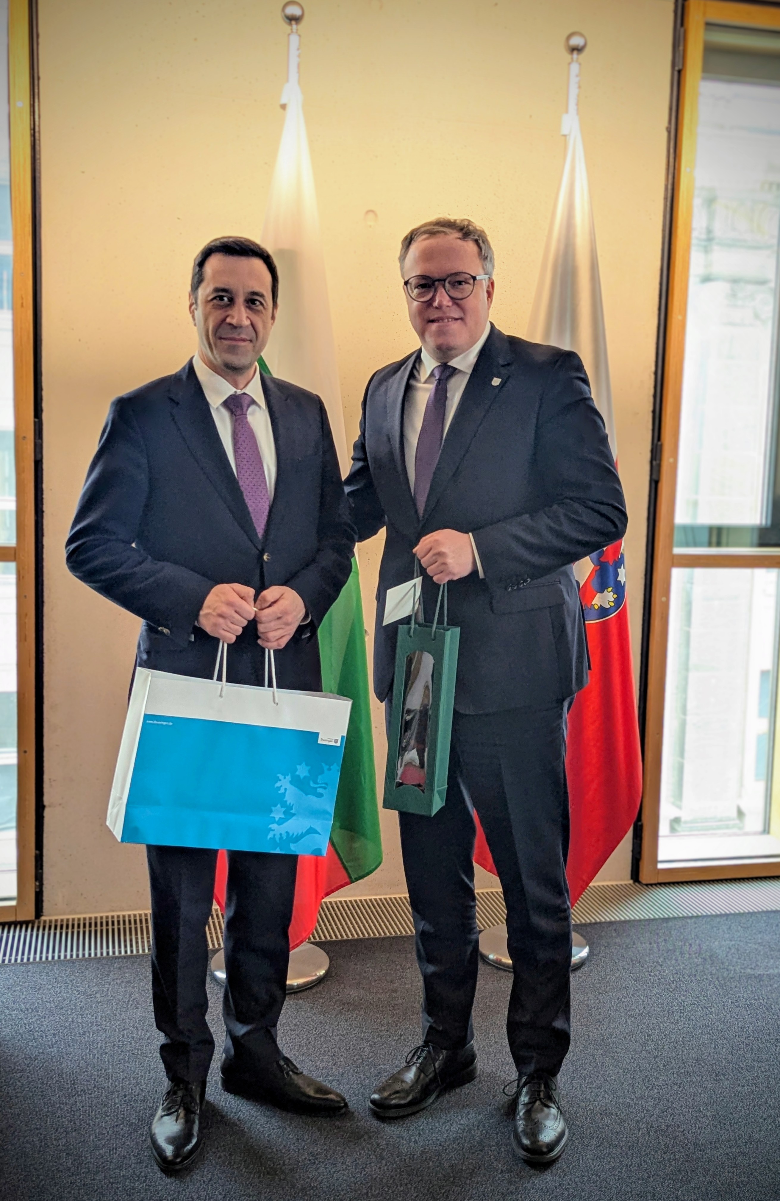 На 30 януари 2026 г. в Берлин, в Представителството на Свободната държава Тюрингия, се проведе официална среща между Посланика на Република България във Федерална република Германия Н.Пр. г-н Григор Порожанов и г-н Марио Войгт (ХДС), министър-председател на Свободна държава Тюрингия. В разговора беше отделено внимание на състоянието и перспективите на двустранните връзки на местно и регионално ниво, включително дългогодишните партньорства между побратимените градове Ерфурт – Ловеч и Гера – Сливен, Зул - Смолян, както и новото партньорство между градовете Гота и Несебър, установено през 2025 г.