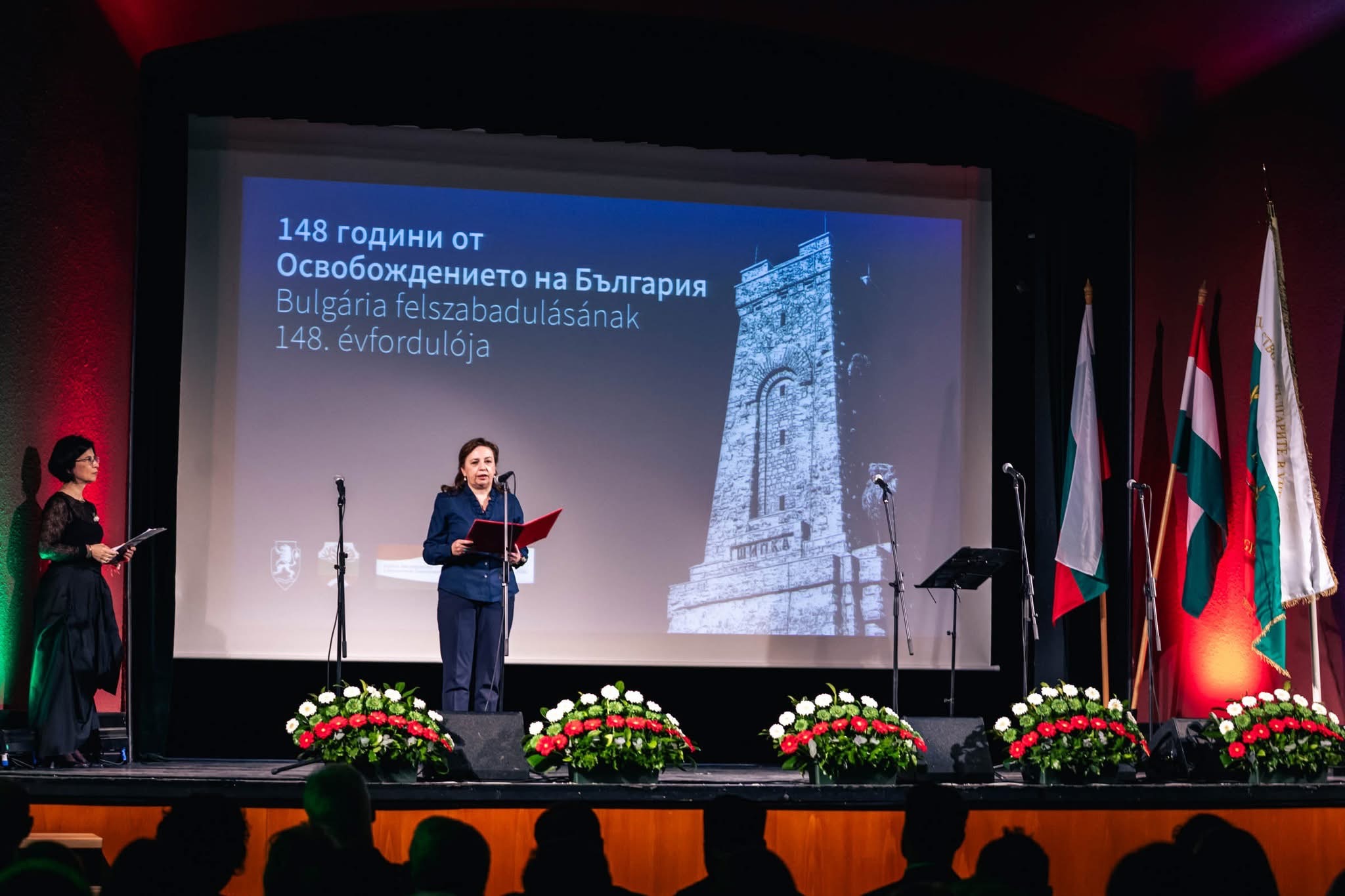 В церемонията по откриването на концерта посланик Мария Ангелиева отправи поздравителен адрес, в който акцентира върху историческото значение на Трети март като символ на свободата, достойнството и единството на българската нация. Тя припомни героизма на знайни и незнайни борци за свободата на България и подчерта настоящия активен и отговорен принос на страната в международната общност като член на НАТО, ЕС, Шенгенското пространство и еврозоната. Посланик Ангелиева изтъкна и неизменната роля на българската общност в Унгария за установяването и поддържането на отличните двустранни отношения и изрази благодарност към унгарската страна за подкрепата и условията, благодарение на които българите са се утвърдили като напълно интегрална и високоуважавана част от унгарското общество, същевременно съхранявайки своя език и национална принадлежност. В заключение тя изрази увереността си, че съществуващите отлични двустранни отношения и ползотворното сътрудничество ще продължат активно и занапред, като отправи благопожелания за здраве, единство и добро бъдеще на българския народ.