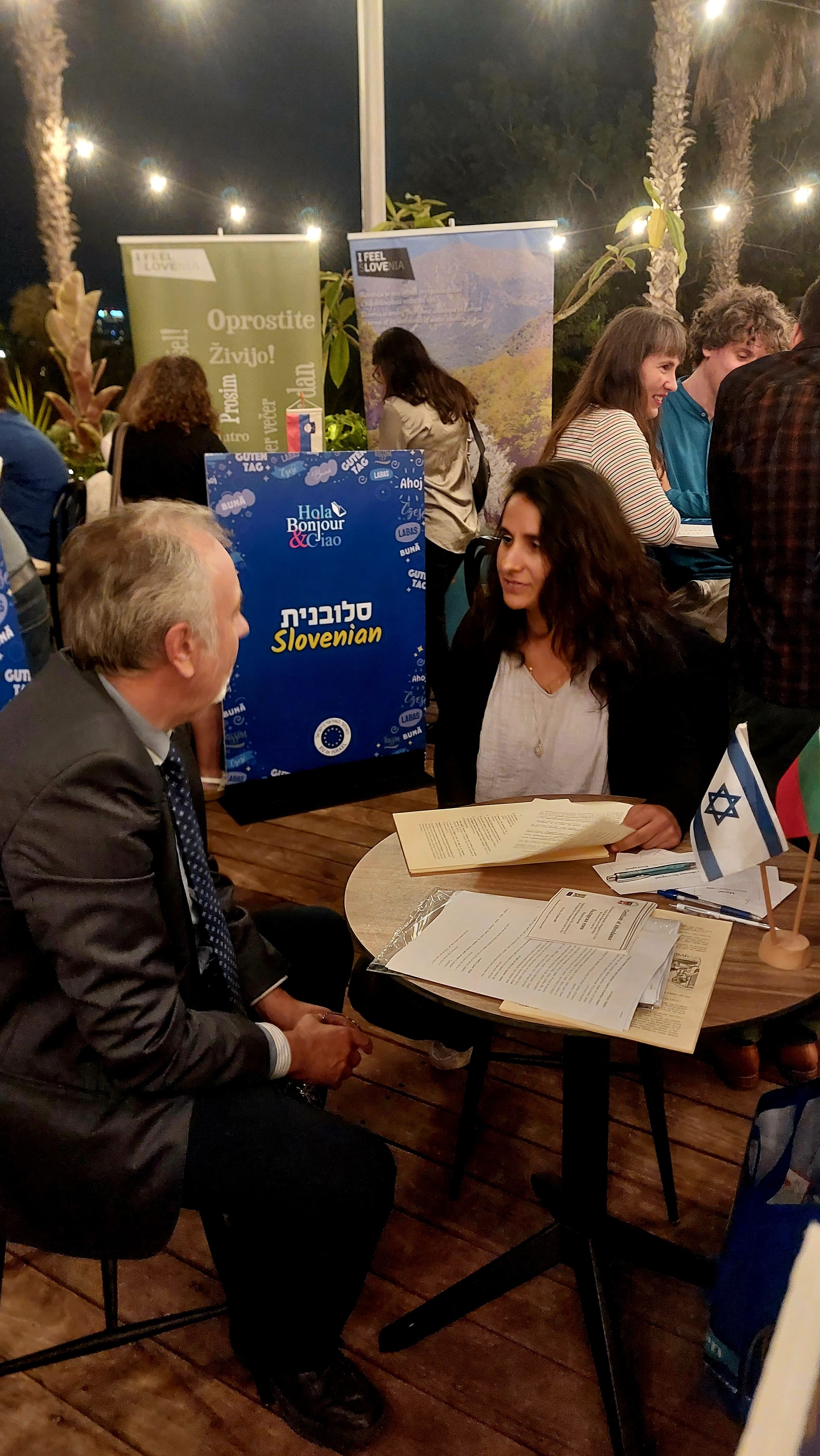 На 21 октомври 2025 г. посланикът на Република България в Израел г-жа Славена Гергова и служители на българското посолство участваха в отбелязването на Европейския ден на езиците в Тел Авив. Програмата на събитието, организирано съвместно от Делегацията на ЕС в Израел, посолствата и културните институти на ДЧЕС, включваше национални щандове, лекция на езикова тема и музикална програма. На българския национален щанд бяха представени експонати от пътуващата изложба на ДКИ „Азбука и история“, а гостите на събитието бяха запознати с любопитни исторически факти за българския език и българската азбука, използвана днес от над 250 милиона души по целия свят. Отговорилите на въпросите от образователната викторина по български език бяха удостоени със сертификати за участие. Ежегодният празник на европейското езиково многообразие бе уважен от жители и гости на Тел Авив, ученици и студенти, представители на дипломатическия корпус и др.