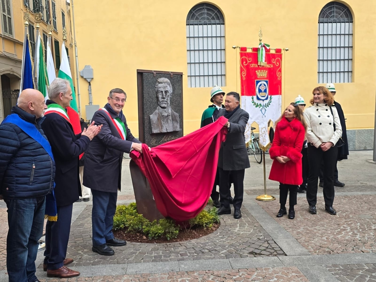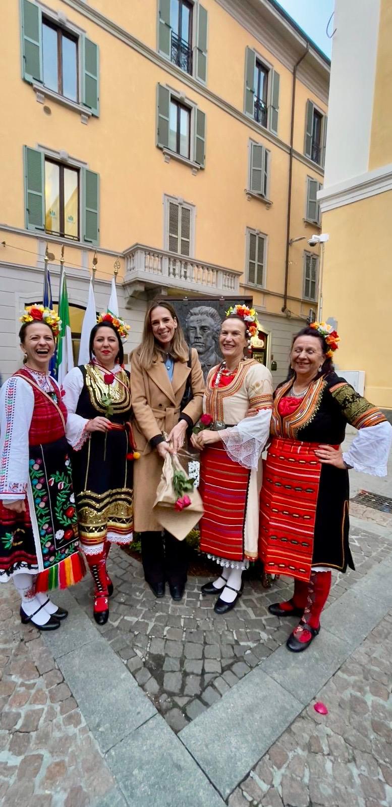Институционално приветствие беше отправено и от г-жа Стела Димитрова, директор на дирекция „Двустранно европейско сътрудничество“ към МВнР на Република България, която присъства специално по повода на официалното откриване. Тя подчерта значимостта на издигането на барелефа за всички българи, които отдават почит на делото и каузата на Апостола на свободата и обърна внимание на символичния смисъл от поставянето на барелеф на Васил Левски в историческия център на Монца – жест, който напомня на нашите сънародници зад граница за каузата, която е отстоявал и същевременно олицетворяваща дългогодишните приятелски връзки и тясното сътрудничество между България и Италия.