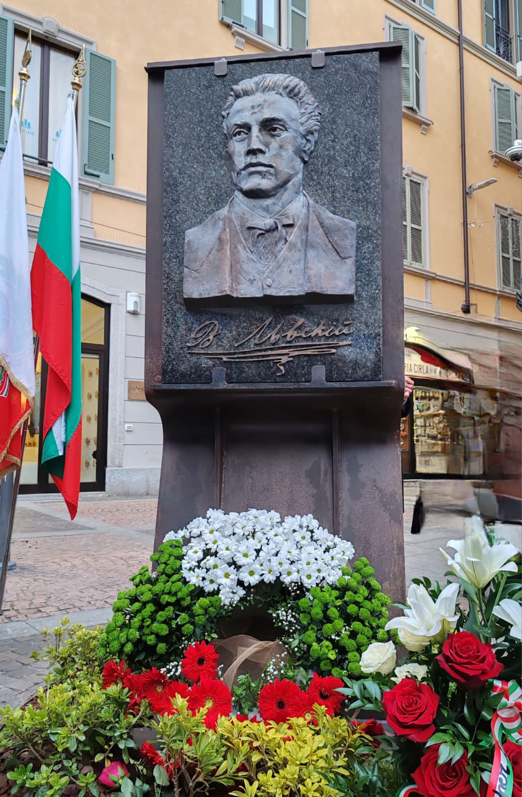 В края на официалната програма беше поднесен венец в цветовете на националния трибагреник от името на Генералното консулство в Милано на новооткрития барелеф на Васил Левски, който беше благословен от протойерей Васил Василев от Българския православен храм „Св. Амвросий Медиолански“ в Милано. Цветя бяха поднесени и от Асоциация за българска култура „Нашенци“, Милано, и от присъстващите гости.