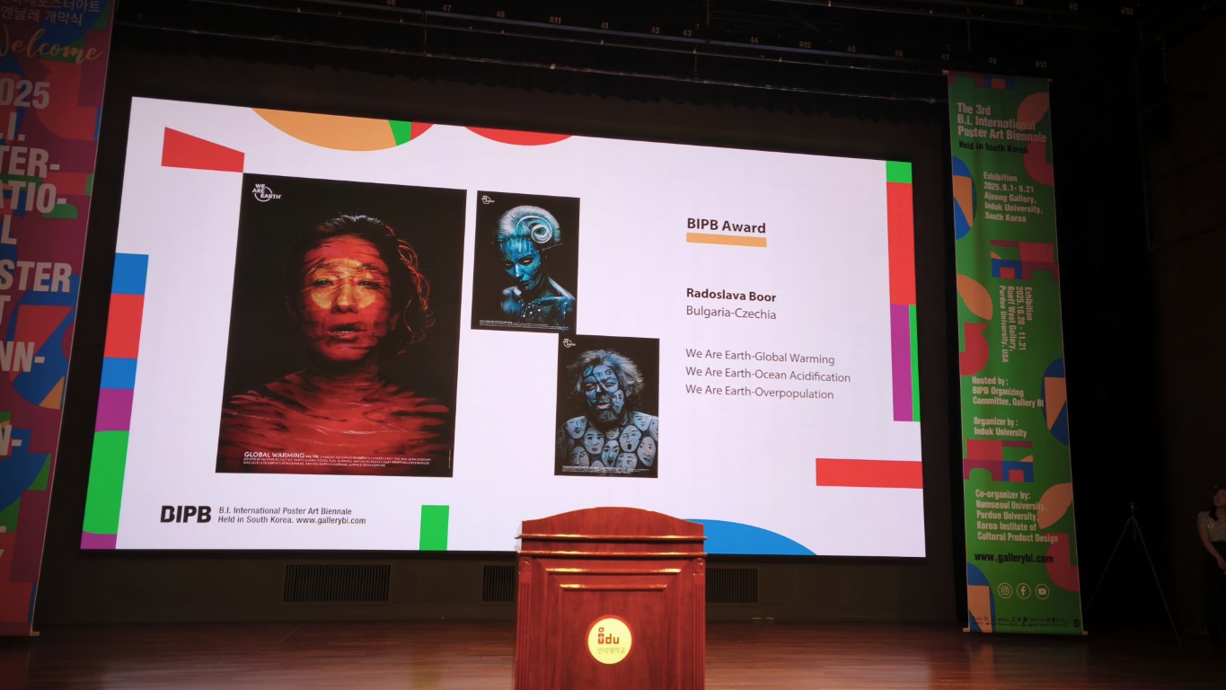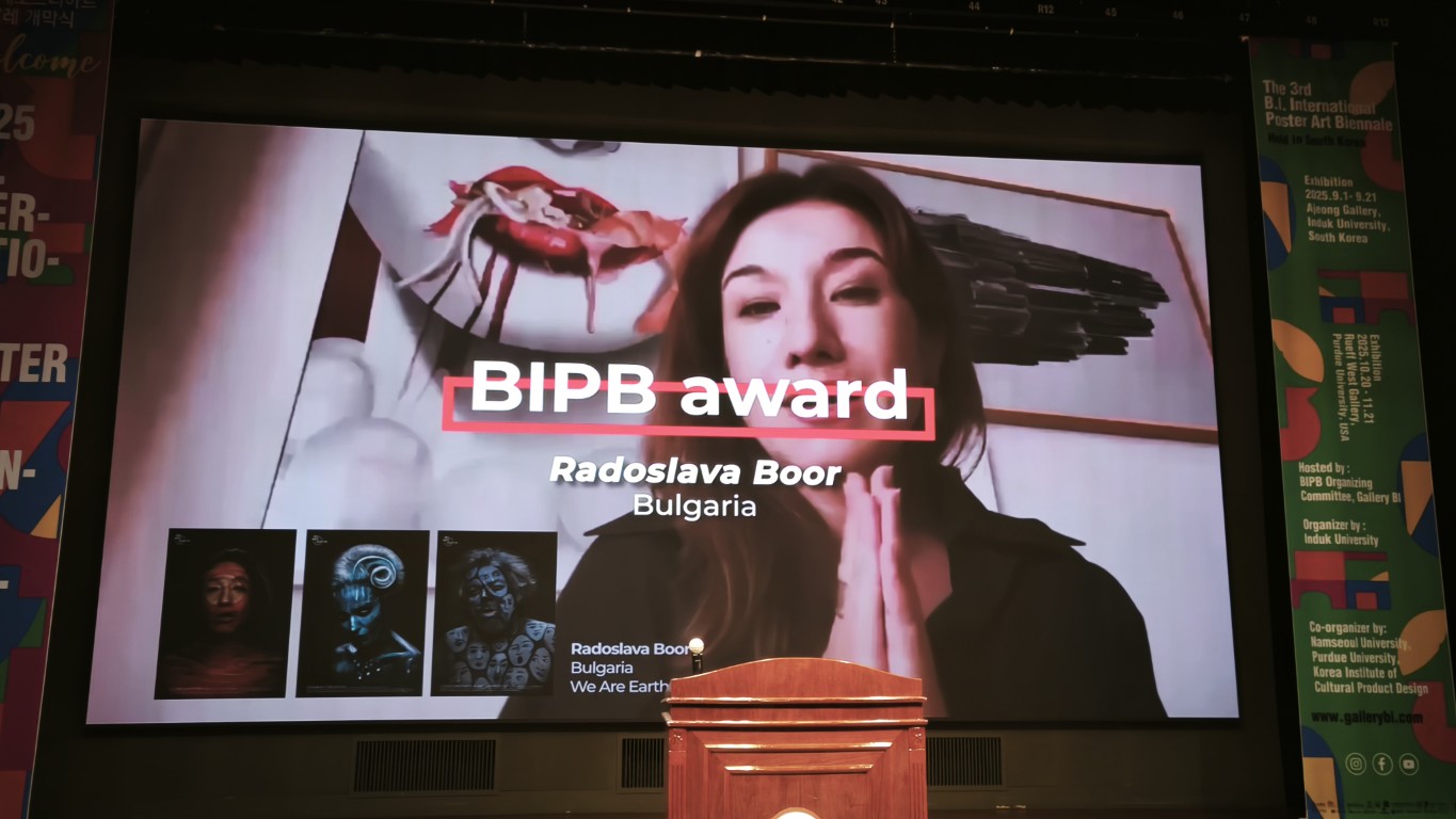В галерия Ahjung на Университета Induk в Сеул днес, 13 септември 2025 г., се състоя откриването на третото издание на B.I. International Poster Art Biennale (BIPB) – едно от най-мащабните международни събития, посветени на плакатното изкуство и графичния дизайн. Събитието бе организирано от Gallery BI в партньорство с Университета Induk и други академични институции. Тазгодишното издание събра финалистите в конкурса от десетки държави, сред които българският творец Радослава Боор, удостоена с наградата BIPB Award.