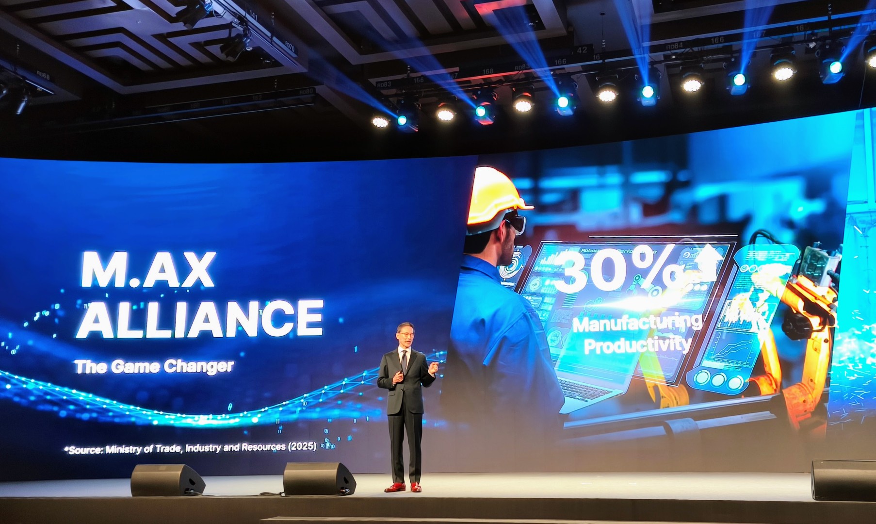 Инициативата AI Factory M.AX (Manufacturing AI Transformation) бе в основата на презентацията и се превърна в една от най-обсъжданите теми на съмита. M.AX е национална програма на Министерството на търговията, индустрията и ресурсите на Република Корея, насочена към ускоряване на цифровата и технологичната трансформация на производствения сектор и процеси чрез внедряване на изкуствен интелект. Проектът обединява водещи корейски компании като Samsung Electronics, Hyundai Motor Company и LG Energy Solution в обща рамка за изграждане на т.нар. „AI фабрики“, които използват автоматизация, интелигентни системи за управление и анализ, за да повишат производителността и енергийната ефективност. Програмата е замислена като стратегическа инициатива с хоризонт до 2030 г., целяща да позиционира страната като световен лидер в областта на интелигентното производство. Съкращението M.AX символизира максималното сливане на промишлените процеси и изкуствения интелект. Проектът се осъществява в сътрудничество с Invest KOREA и други правителствени агенции, които насърчават международното участие и инвестиции в новото поколение високотехнологични производствени екосистеми на Република Корея.