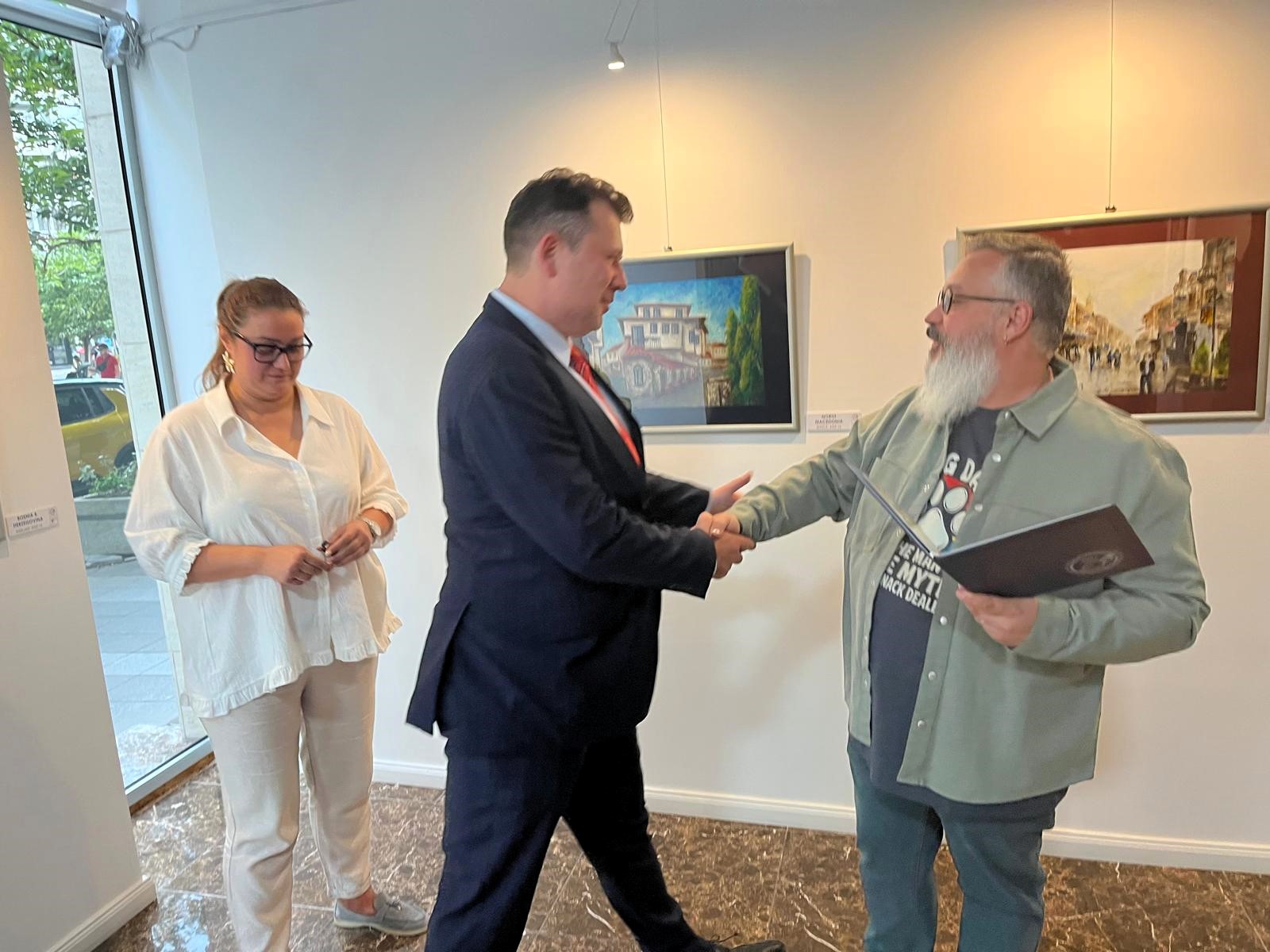 От името на организаторите на „Малък битолски Монмартър“, г-н Неделковски връчи благодарствена грамота на българския посланик Радуков и подари картина, създадена в рамките на детската арт колония, на директора на БКИЦ г-жа Антония Велева.
