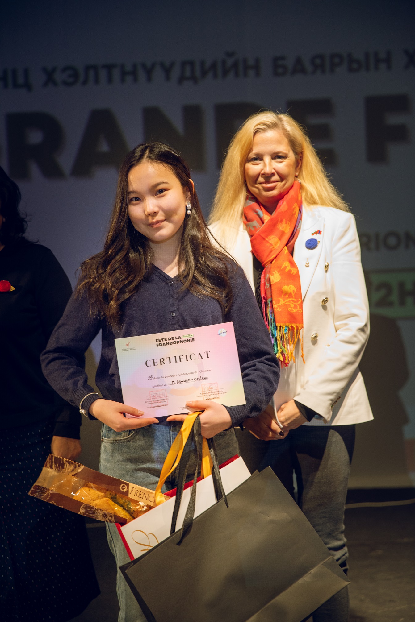 Ръководителят на Посолството на Република България в Улан Батор, г-жа Александрина Гигова, участва в журито на Големия финал на обявените конкурси в категория за песен, изпълнена на френски език.