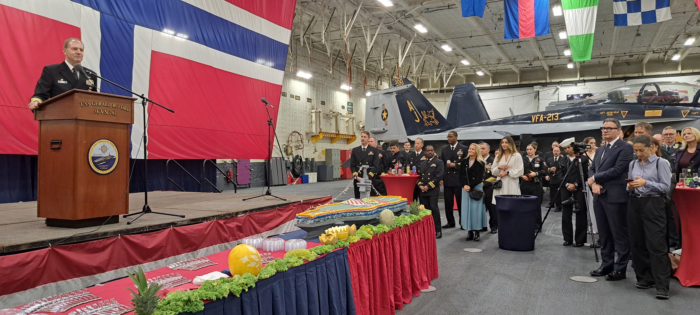 Прием на САЩ в Осло на борда на Gerald R. Ford (CVN 78)