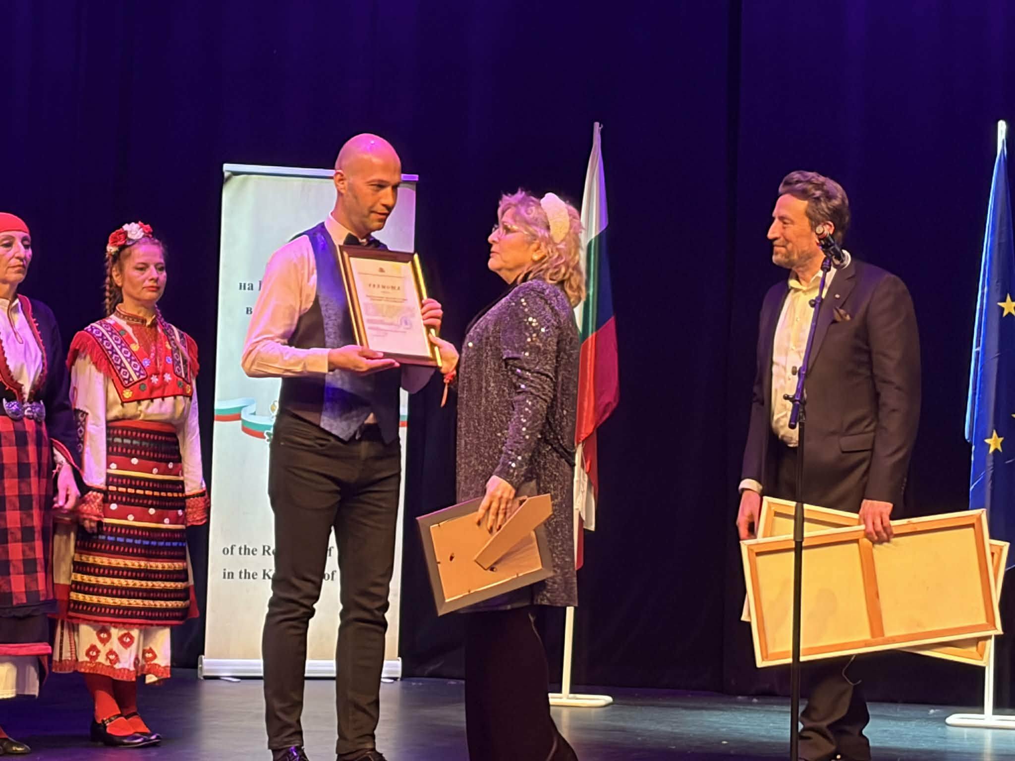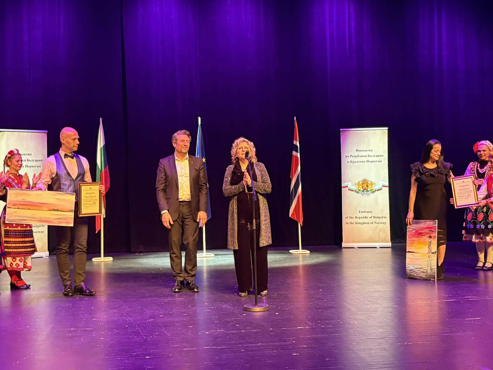В знак на признателност посланик Иванова връчи грамоти на хореографите Рангел Вангелов и Светлана Милошева, подписани от нея и от почетния консул г-н Кутин, който от своя страна подари на съставите за спомен от Ставангер и свои картини с пейзажи от града.