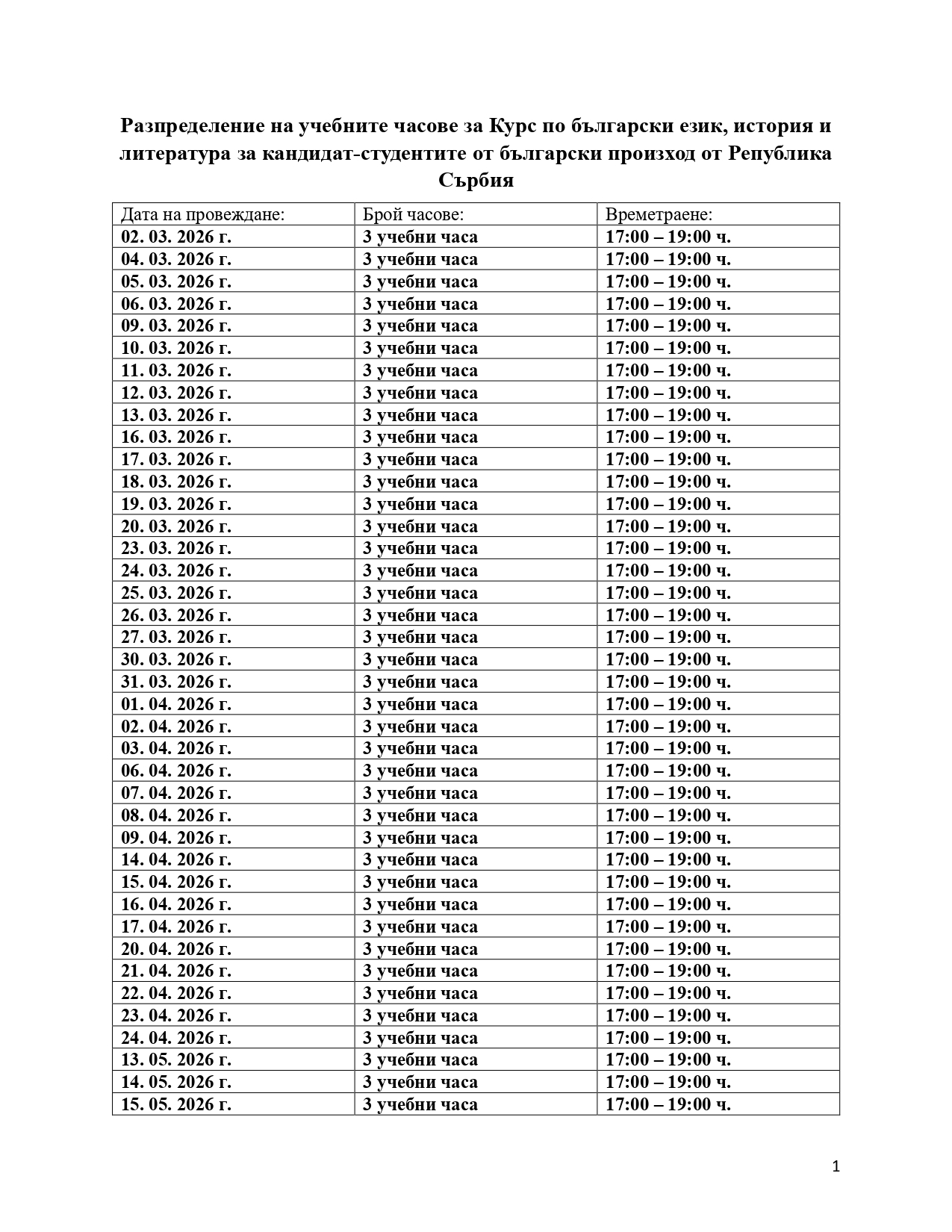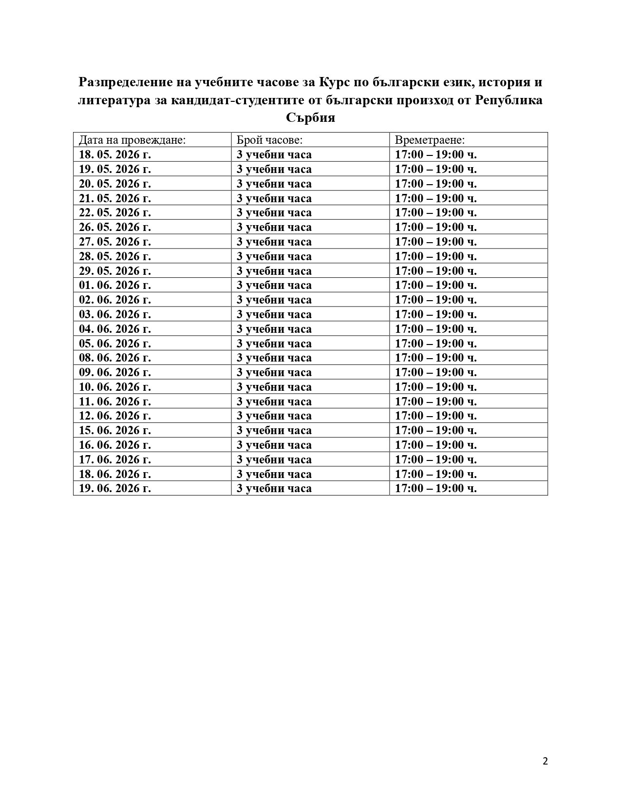 Списъците с желаещите кандидат-студенти се подават до преподавателите от Института по български език "Проф. Любомир Андрейчин" само от председателите на българските дружества в Република Сърбия. Самостоятелно изпратени имейли няма да бъдат вземани под внимание.