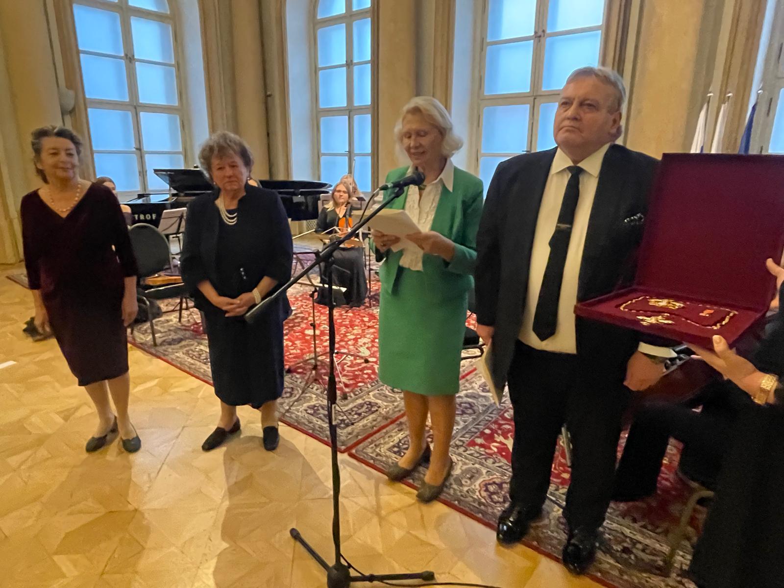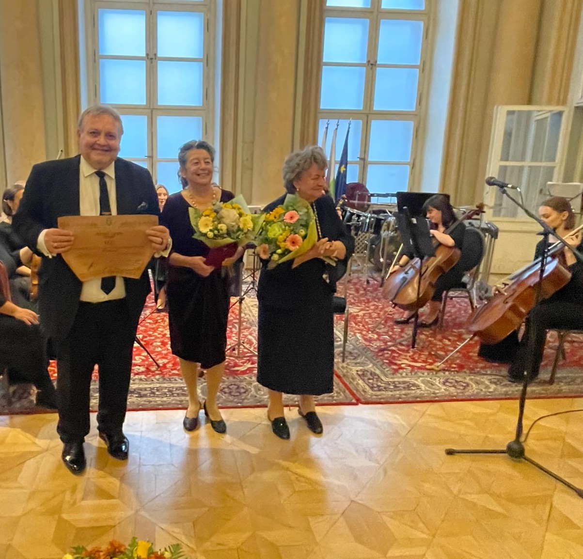 Концертът бе предшестван от тържествена част, в която посланик Петков произнесе слово и се състоя церемония по връчването на високи държавни отличия за професор Мария Добрикова и за доктор Мария Кошкова. С укази на президента на Република България г-н Румен Радев проф. Добрикова, ръководител на катедра „Славянски филологии“ в университета „Коменски“, бе удостоена с орден „Св. св. Кирил и Методий“ огърлие за нейните особено значими заслуги за развитието на двустранните ни отношения в областта на науката, образованието и културата, а д-р Кошкова, която е автор на най-значимия словашко-български речник – с орден „Св. св. Кирил и Методий“ втора степен, сребърен, с оранжева лента, за нейния значим принос за развитието на двустранните ни отношения в същите области. Двете бяха закичени от посланика с високите отличия пред авторитетната и многобройна аудитория.