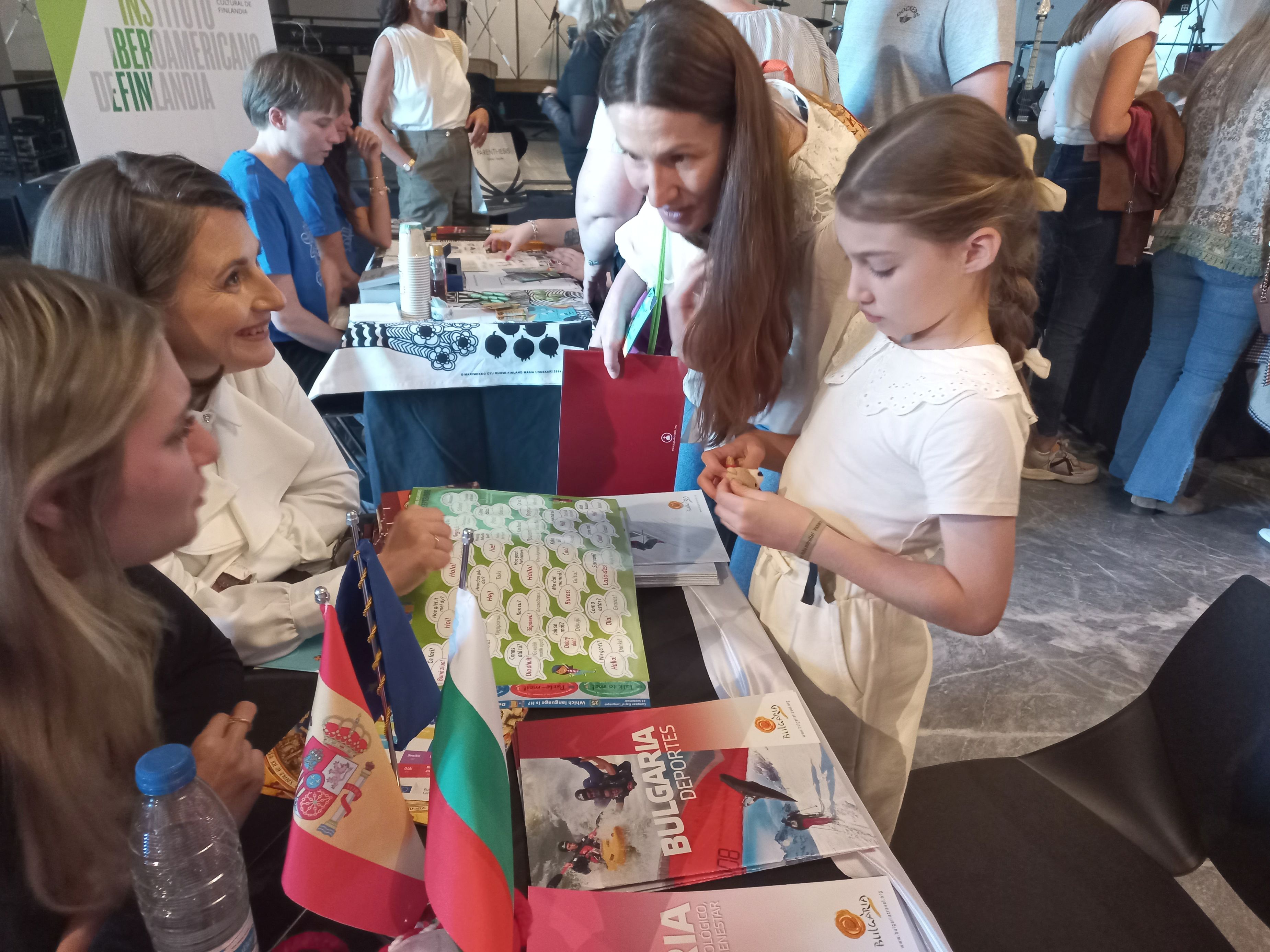 На 25 септември в престижния Клуб на изящните изкуства (Círculo de Bellas Artes) в Мадрид се отбеляза Европейският ден на езиците (26 септември), организиран от мрежата на културните институти EUNIC и делегацията на Европейската комисия. Посолството на Република България в Мадрид участва със свой щанд, с цел да осъществи колкото е възможно по-голям културен и езиков контакт с представителите на разнообразната публика, съставена от граждани на Мадрид и гости на града. Щандът бе посетен от много хора, сред които голям брой деца, проявили сериозен интерес към страната ни, нейния език, история, култура и природни забележителности. Кратки изрази на български език присъстваха на официалния плакат, популяризиращ събитието и раздаван на гостите.