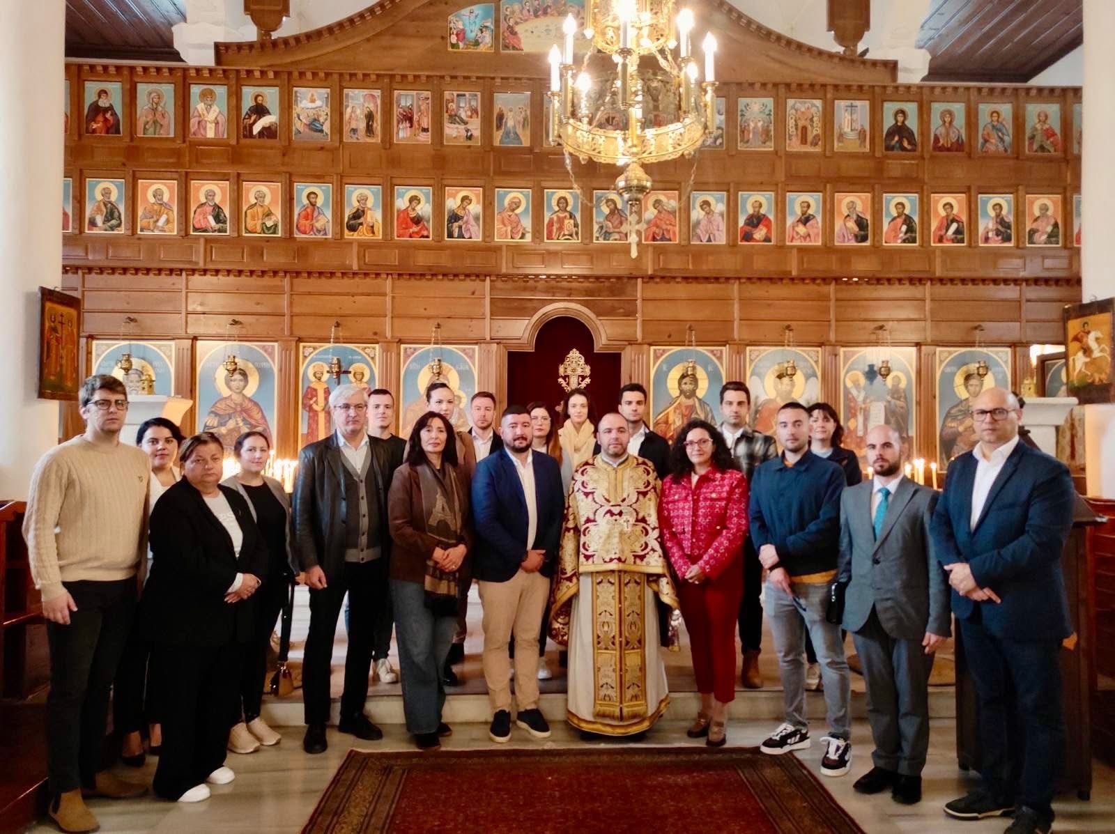 Последният ден от посещението, делегацията присъства на Божествена света литургия, отслужена от Адрианополския митрополит Амфилохий и отец Ангел Георгиев от Старозагорската света митрополия на български и гръцки език в църквата „Св. Св. Константин и Елена“. След края на Литургията в своето обръщение към стажант-аташетата отец Ангел Георгиев подчерта значението на вероучението и дипломацията, като наблегна и на важността сътрудничеството между българските мисии в чужбина и Българската православна църква-Българска патриаршия да бъде сред основните приоритети в работа на дипломатическата служба.