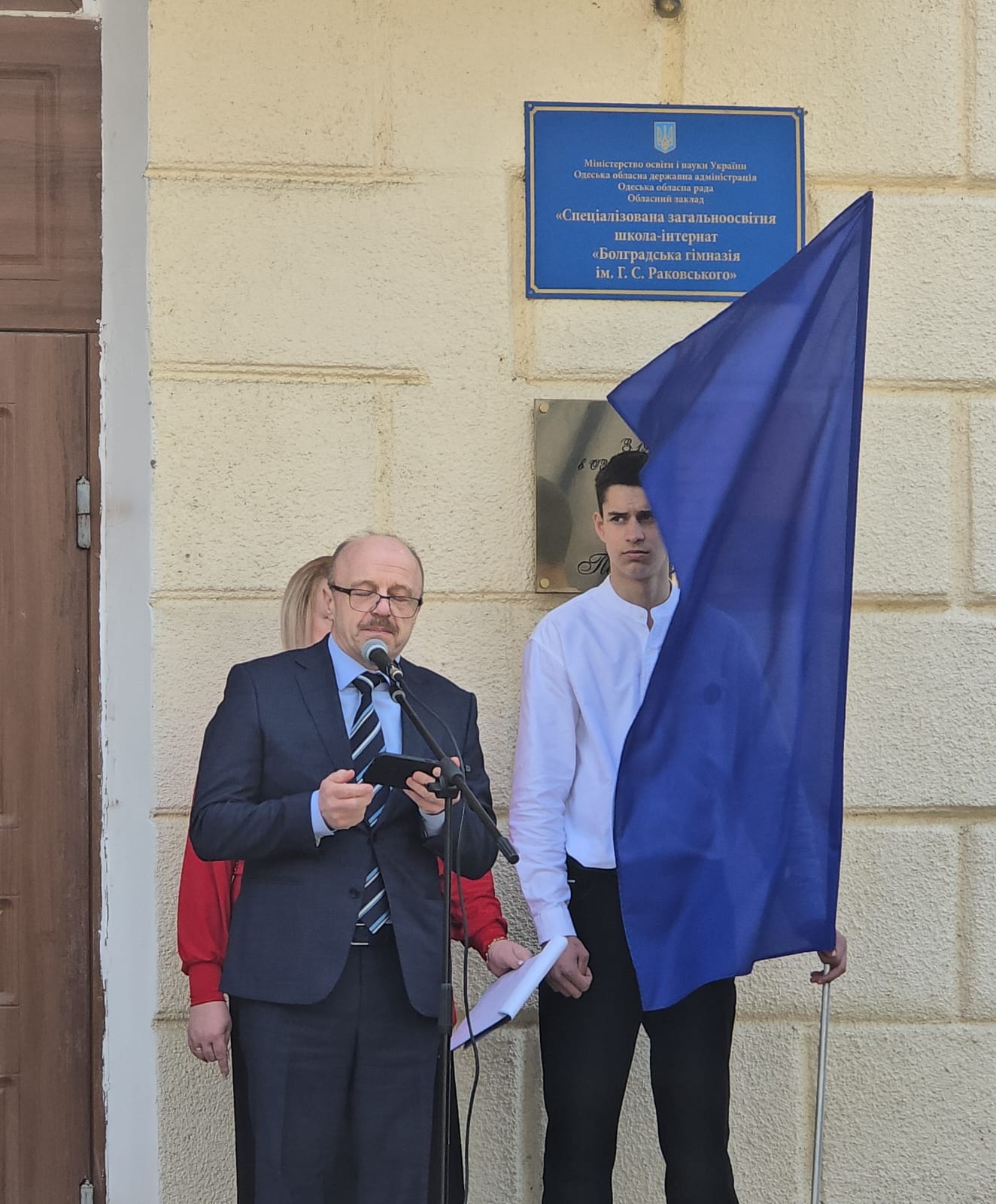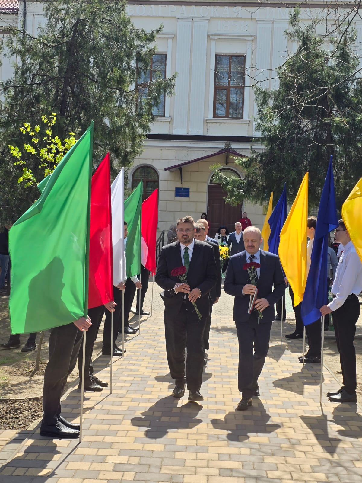 В своето изказване генералният консул на РБ в Одеса Светослав Иванов поздрави учениците и учителите на гимназията, отбелязвайки историческото значение на учебното заведение за България, посочи желанието на българските преселници по това време да имат свое училище, в което децата да продължат да изучават български език.