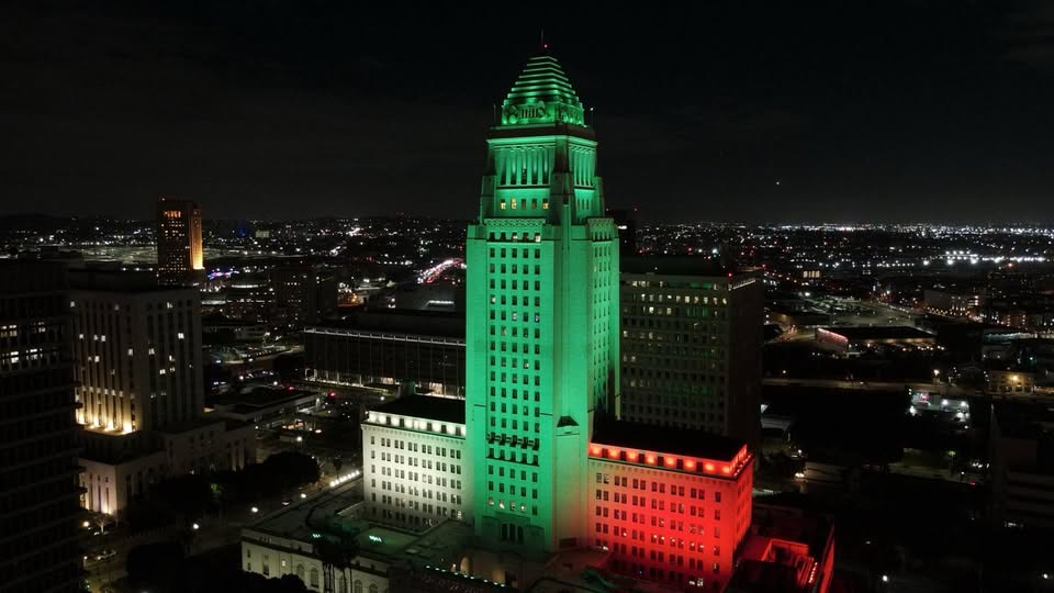 В чест на Националния празник на Република България, Трети март, емблематичната сграда на общината на Лос Анджелис (Los Angeles City Hall) грейна в цветовете на българския национален трибагреник.