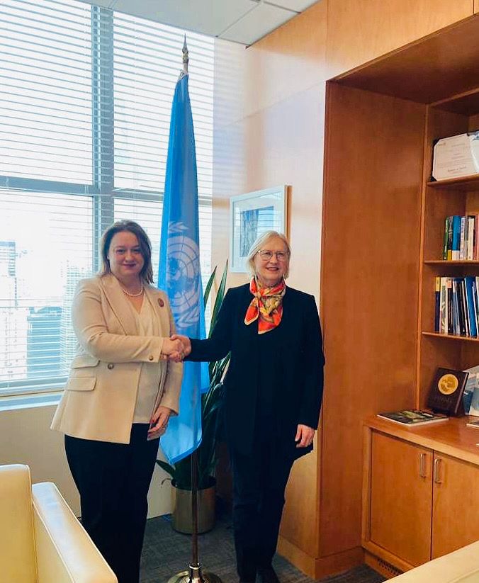 Посланик Гергана Караджова разговаря с Елизабет Спехар, помощник - генерален секретар на ООН по мироизграждане.
