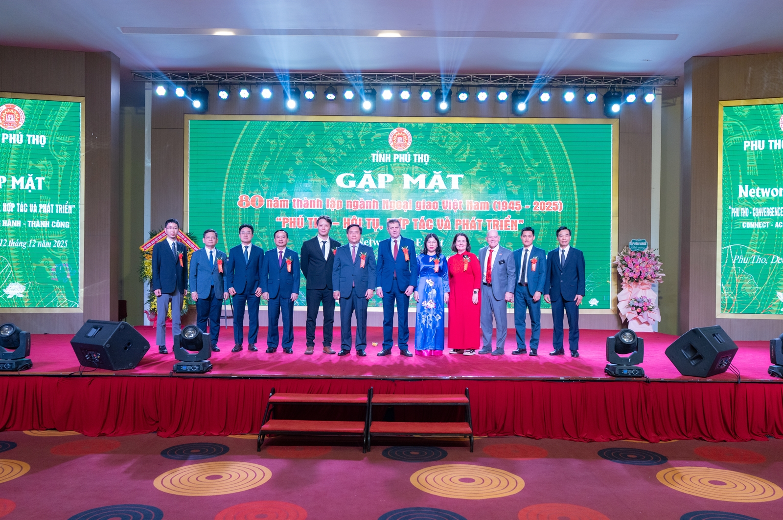 На 12 декември, по случай 80-годишнината от създаването на дипломатическата служба на Виетнам (1945-2025), ръководството на провинция Фу Тхо организира тържествена среща на международните партньори на тема: „Фу Тхо - сближаване, сътрудничество и развитие“. Присъстваха заместник-министъра на външните работи г-жа Нгуен Мин Ханг, ръководители от провинция Фу Тхо, представители на дипломатически представителства и международни организации във Виетнам, чуждестранни неправителствени организации, партньори и инвеститори.