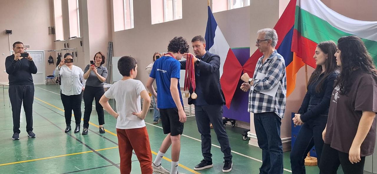 Ambassador Nikola Nikolov encouraged the participants to remain as determined and driven as ever toward success and high achievements. He thanked the director of French Lyceum for the excellent partnership, the commitment and enthusiasm shown by both the school administration and the students and friends of French language and culture in Yerevan. The event not only promotes sports and a healthy lifestyle but also helps build and maintain friendships outside the school and work environments. Nikola Nikolov noted that the goal is to have other future joint initiatives with the French Lyceum that will help students freely demonstrate their skills and give them the opportunity to develop and gain confidence in their knowledge and abilities.