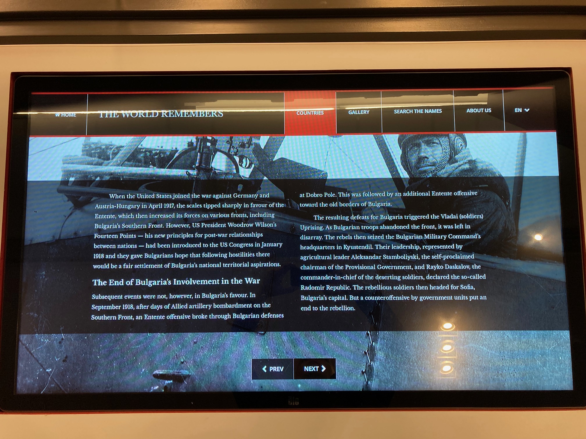 This was acknowledged by Mr. Robert Thomson, President of the Canadian non-governmental organization "The World Remembers", which initiated the project in direct collaboration with the Canadian authorities. Now the data on the Bulgarian participation in the WWI has been successfully integrated into the exhibition along with the names of 3,095 Bulgarian officers and soldiers who have been killed in action.