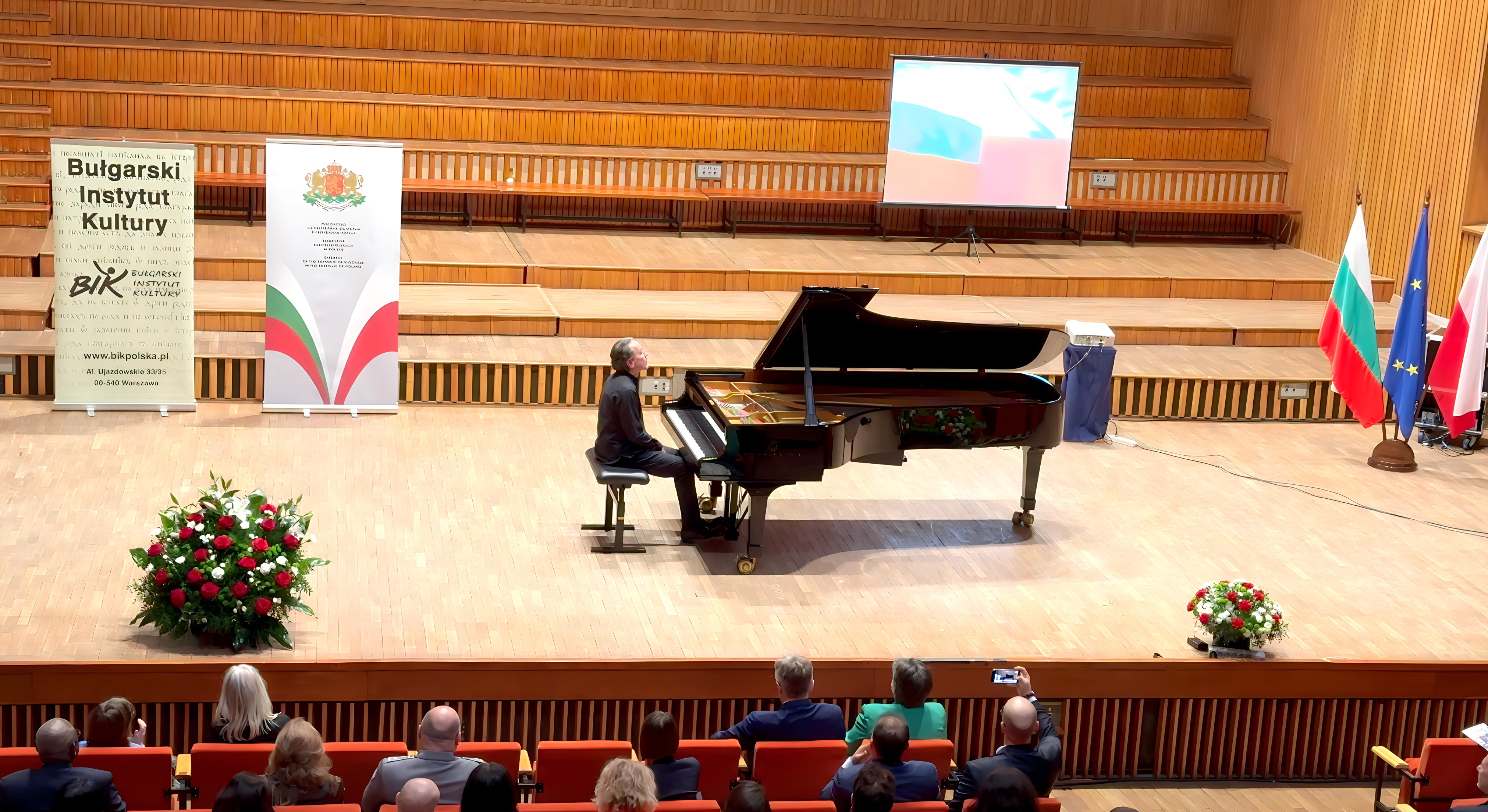 On March 1, 2024, a solemn celebration of the National Day of the Republic of Bulgaria – March 3rd – took place in the large concert hall of the Frederic Chopin University of Music in Warsaw. The event was jointly organized by the Embassy of the Republic of Bulgaria in the Republic of Poland and the Bulgarian Cultural Institute in Warsaw and included a ceremonial part and a concert by the distinguished Bulgarian pianist Lyudmil Angelov, followed by a cocktail party.