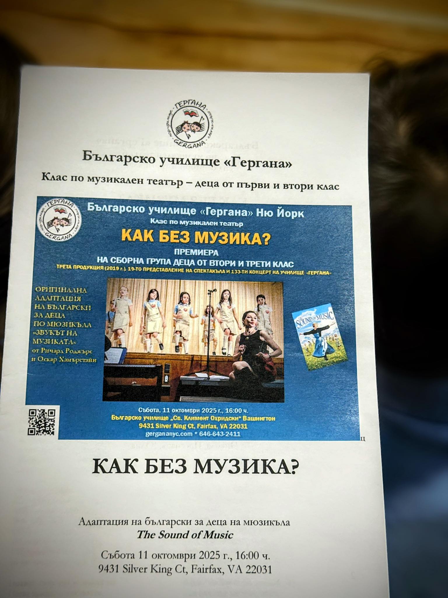 The central highlight of the program was the musical “How Without Music”, performed by students (2nd–3rd grade) from the “Gergana” School in New York. The children of “Gergana” presented the musical for the 19th time. The play is an original Bulgarian adaptation for children of “The Sound of Music” by Richard Rodgers and Oscar Hammerstein II. It was translated by Valentin Hadjiyski and staged by Gina DiDonato, head of the school’s theater studio, together with pianist Lora Al-Ahmad and Eva Gendel.