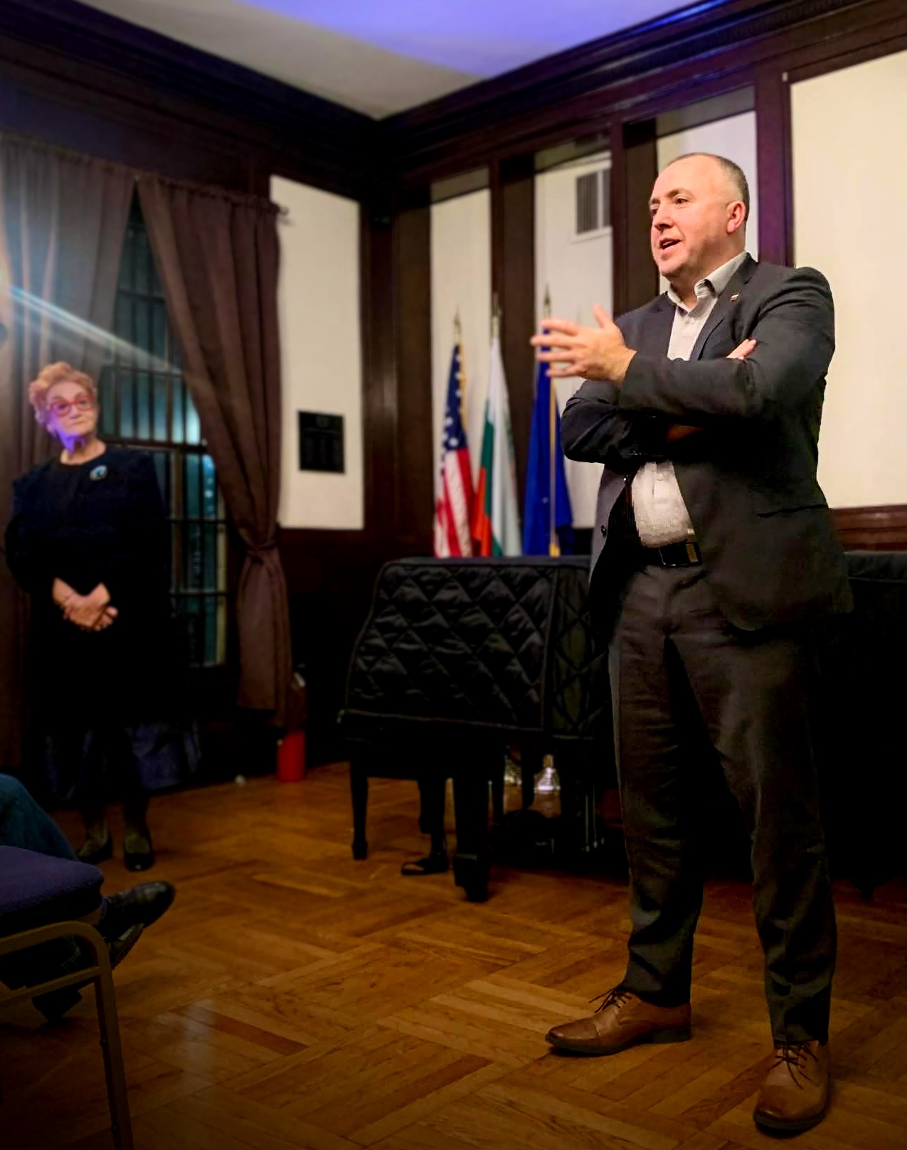 Introducing the event, the Consul General in New York, Angel Angelov, emphasized its academic and commemorative nature and its tribute to the memory of the victims. He highlighted the restoration of the church after the attack and its place within the so-called “Triangle of Tolerance,” which includes the three religious temples in the center of Sofia—the Sofia Synagogue (1909), the Banya Bashi Mosque (built in the 16th century), and the early Christian Orthodox Church of St. Sofia (built in the 4th century).