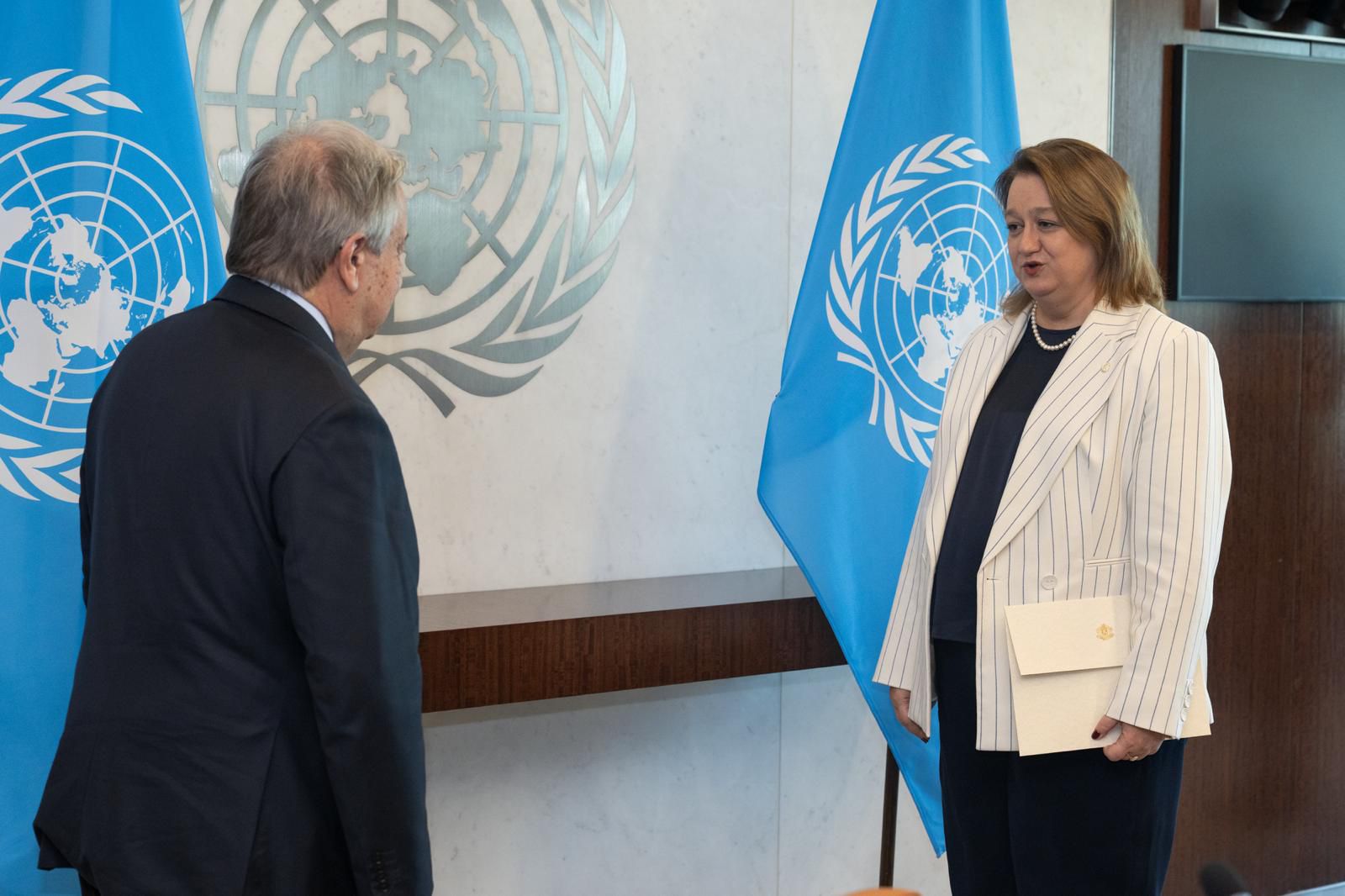 On 3 December 2025, at an official ceremony held at the United Nations Headquarters in New York, the newly appointed Permanent Representative of the Republic of Bulgaria to the United Nations, H.E. Ambassador Gergana Karadjova, presented her credentials to the Secretary-General of the United Nations, H.E. Mr. António Guterres.