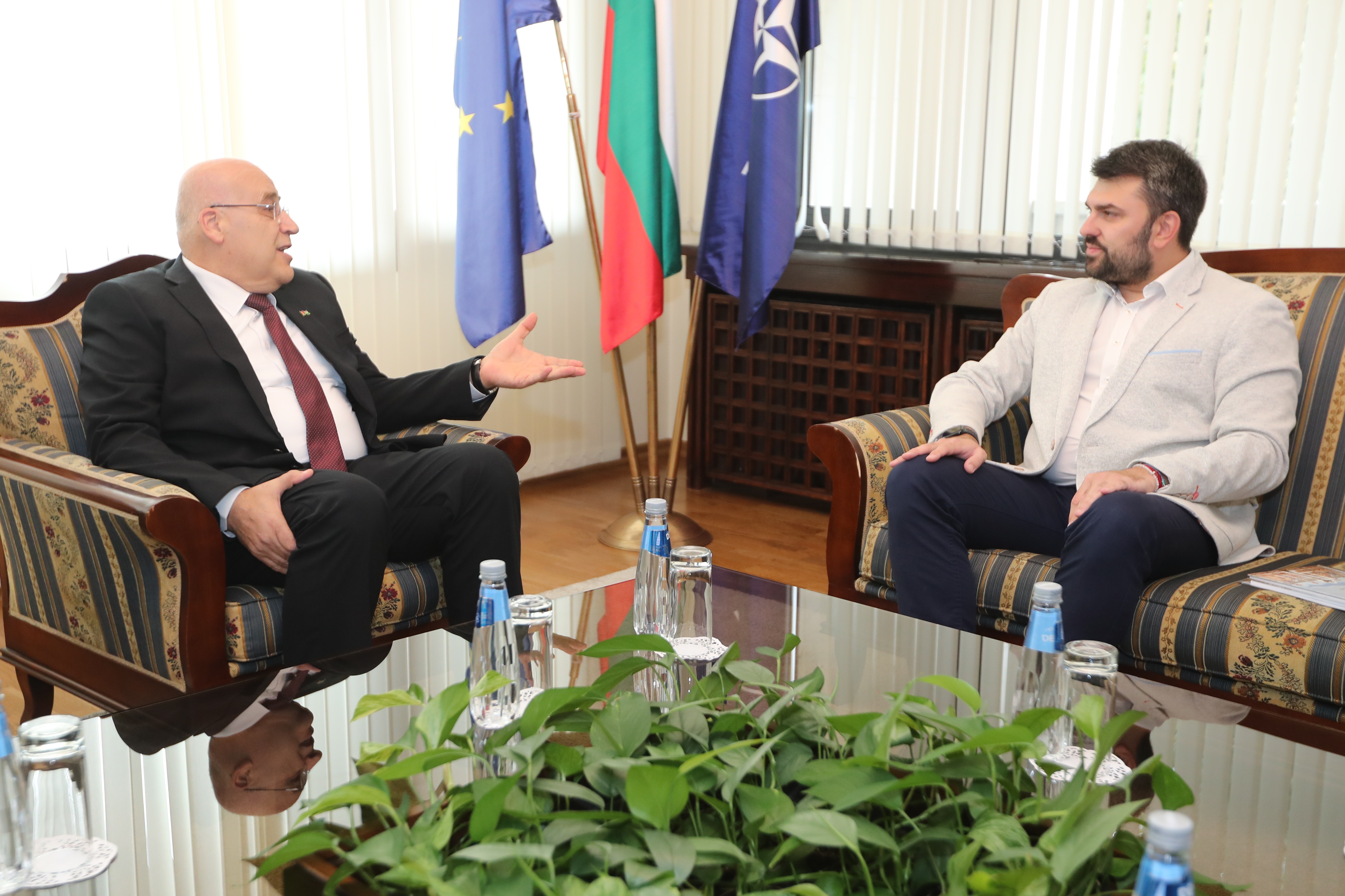 Minister Georgiev thanked Dr Abu Jaish for his dedicated work towards deepening bilateral relations between Bulgaria and Palestine, noting that despite his short stay in Bulgaria, Ambassador Abu Jaish has left a positive mark on bilateral ties. For his part, Ambassador Abu Jaish expressed gratitude to the Bulgarian government and personally to Minister Georgiev for their efforts to strengthen bilateral cooperation and for Bulgaria’s position in support of the two-state solution.
