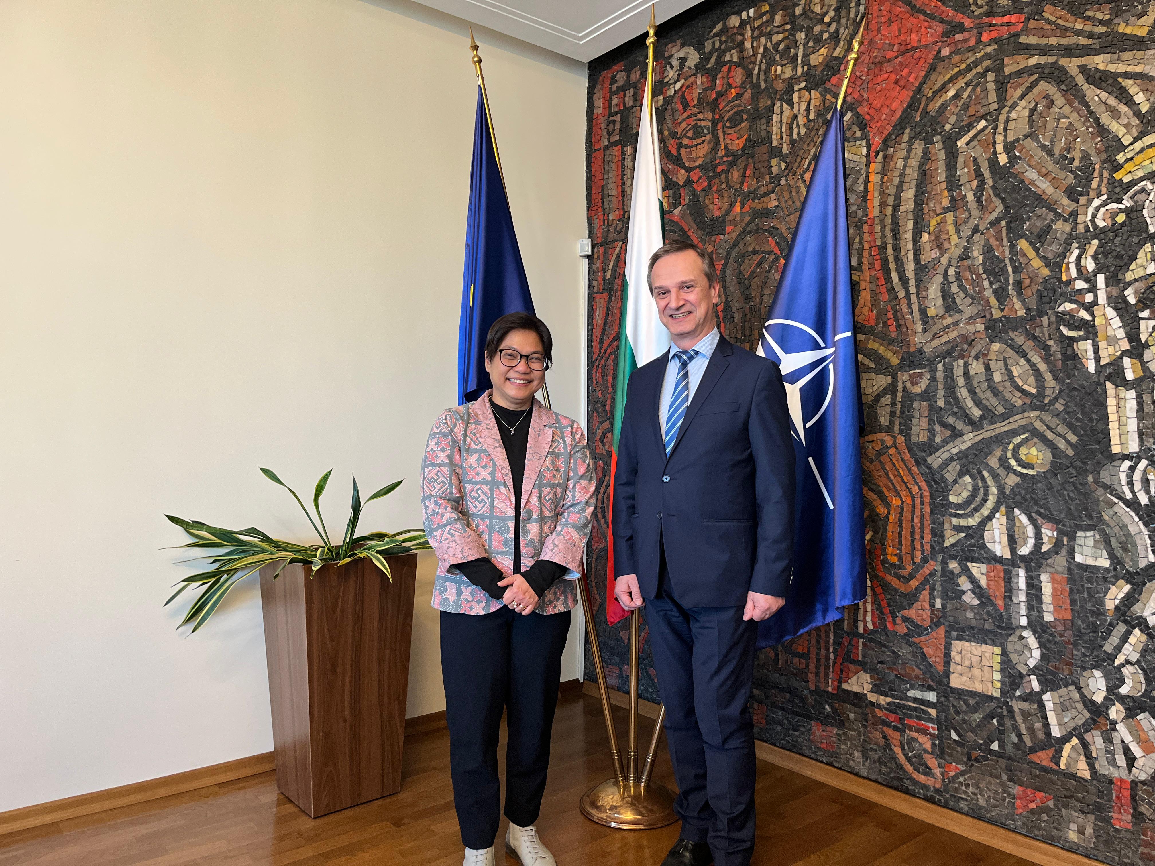 On 11 March 2026, the Deputy Minister of Foreign Affairs, Radi Naydenov, held a meeting at the Ministry of Foreign Affairs with the Ambassador of Indonesia to Bulgaria, H.E. Ms Listiana Operananta.