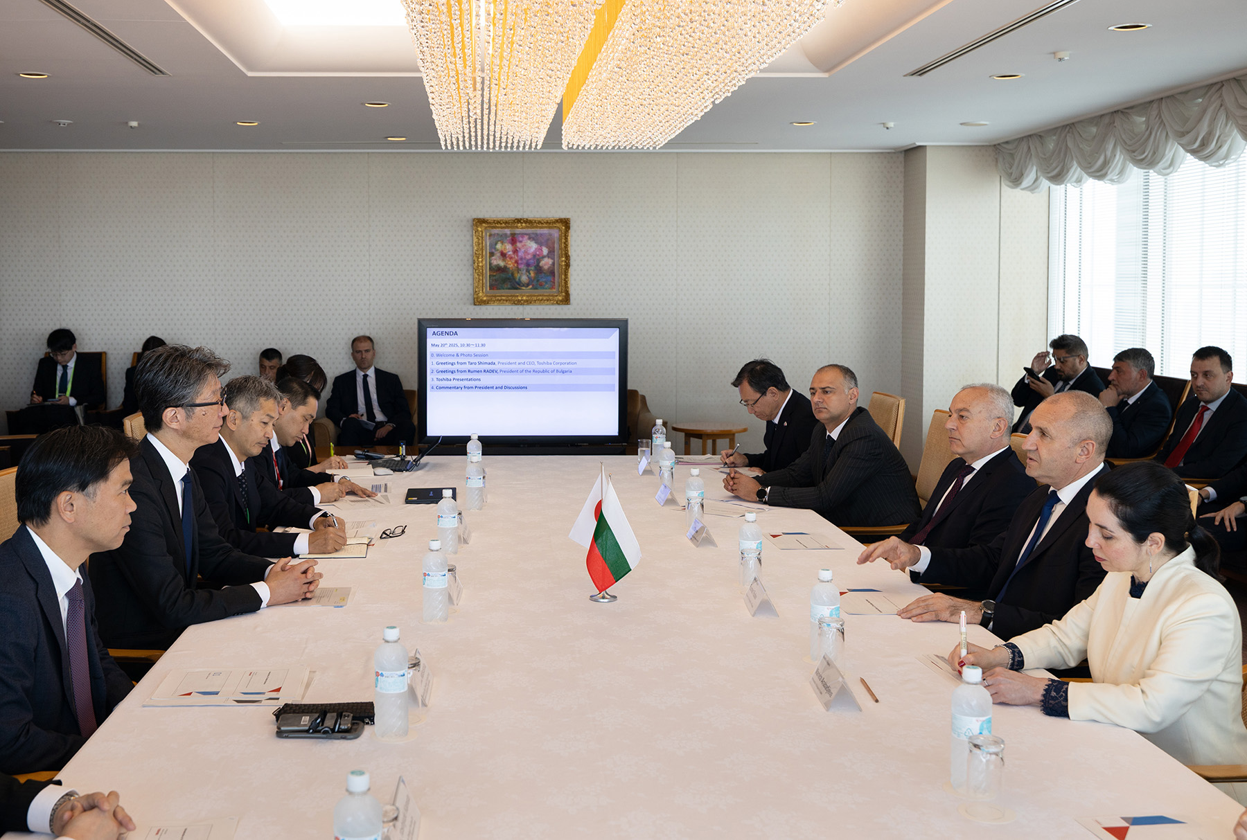 20日、ラデフ大統領は駐日ブルガリア大使館とジェトロ主催のビジネスフォーラムに参加し、基調講演を行いました。フォーラムには150以上の企業が参加しました。大統領は東芝本社も訪問し、島田太郎代表取締役社長兼CEOと会談しました。また、日本・ブルガリア経済委員会主催のワーキングランチに参加しました。