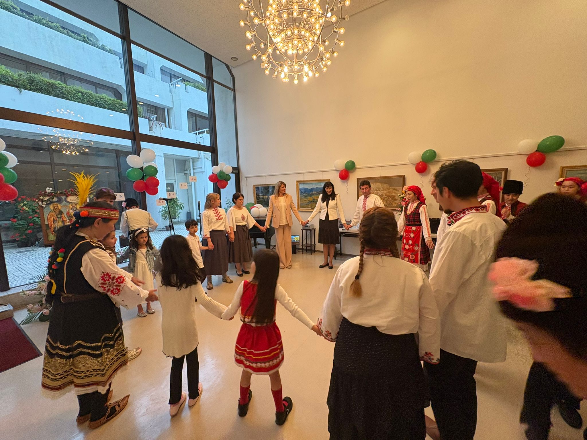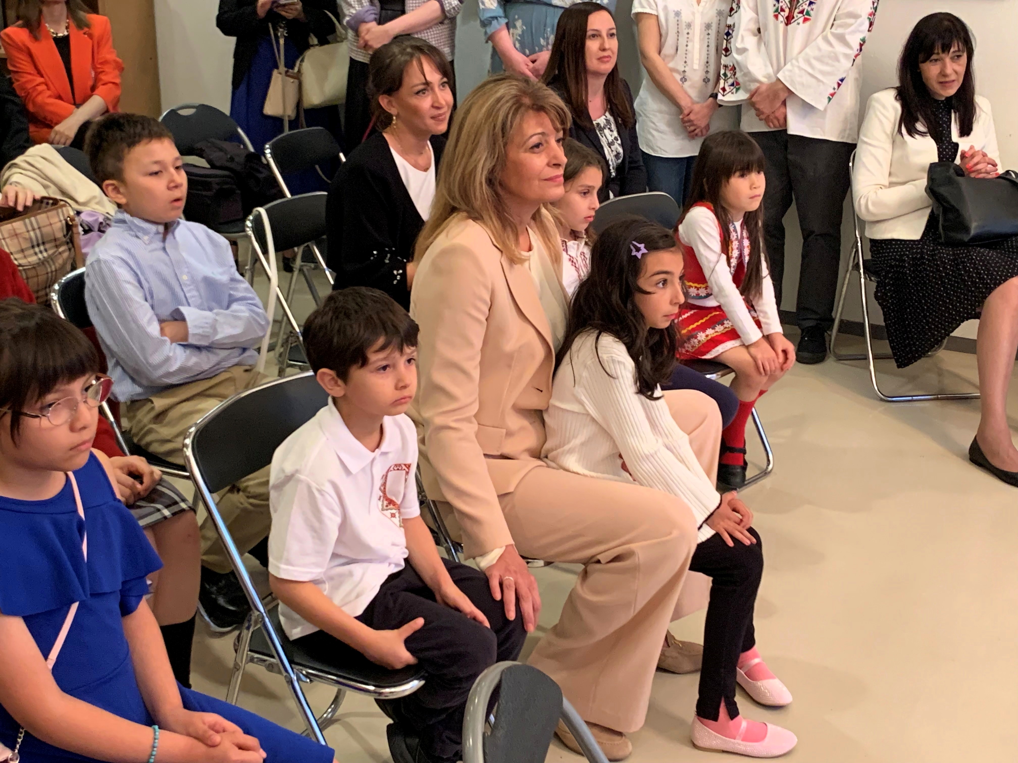 19日、ラデヴァ大統領夫人は駐日ブルガリア大使館が主催した日本在住のブルガリア人と大使館所属の「ヴァシル・レフスキ」ブルガリア学校の子供たちとの交流会に参加しました。また、日本でブルガリアの民族音楽と舞踊を広めているグループ「KOGA」、「デテリーナ」、「PISMO」、「ナ・ホルツェ」やその指導者である入佐直人氏、石坂史郎氏、佐藤みゆき氏、ボグダン・ヴァグラロフ氏と会い、皆様のブルガリア民族音楽のパフォーマンスを楽しみました。