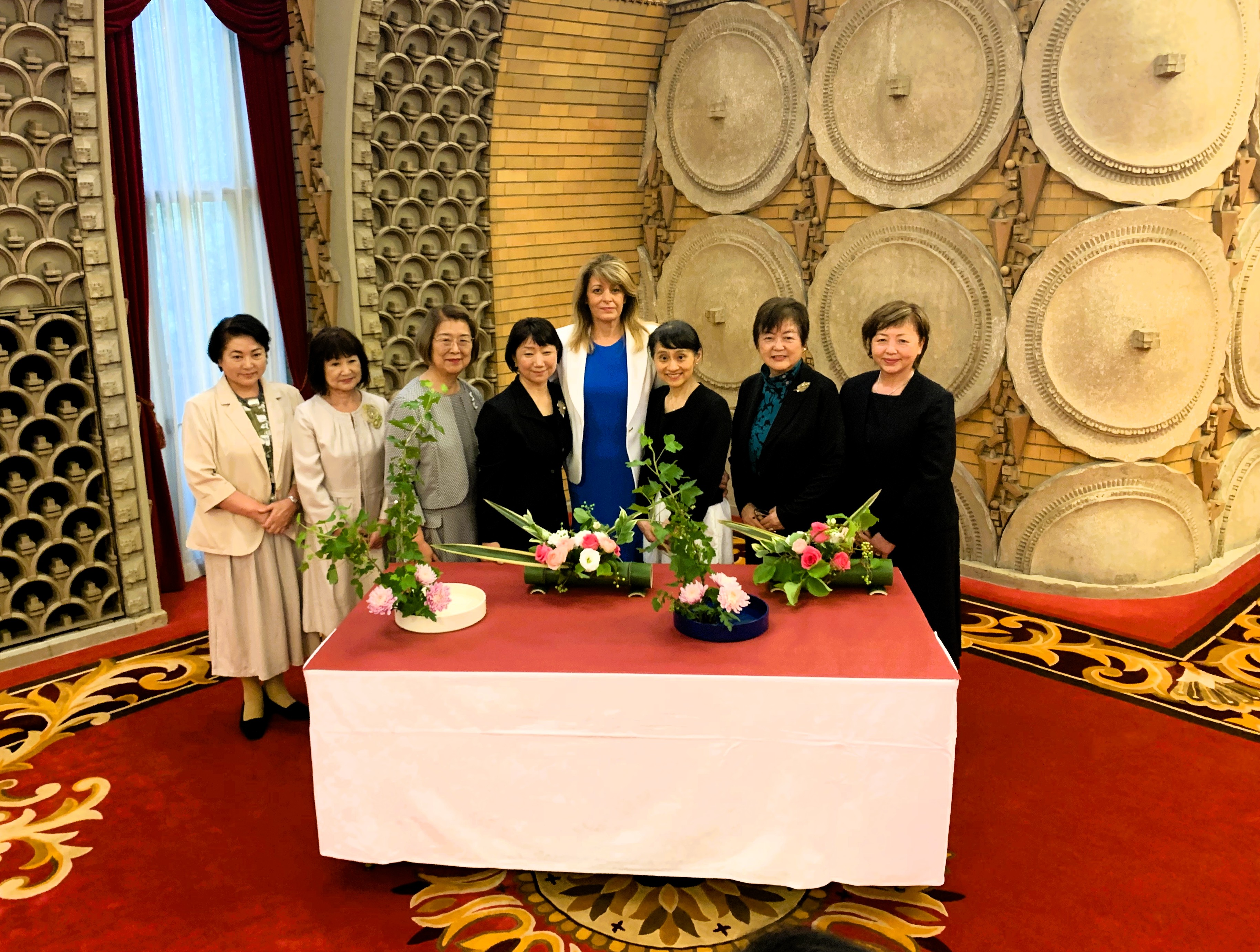 5月20日にラデヴァ大統領夫人は石破佳子日本国総理大臣夫人と懇談しました。懇談の前に両夫人は、生け花を通じた相互理解を促進しているいけばなインターナショナル東京支部の講師から生け花の歴史や文化的背景についての説明を受けつつ、実際にブルガリアの国花であるバラを使った生け花を体験しました。ラデヴァ夫人と石破夫人は両国の文化・教育交流分野における取り組みについて意見交換をし、その交流が他の分野でもブルガリアと日本の友好関係を発展させるための強力な基盤を作ることで意見が一致しました。