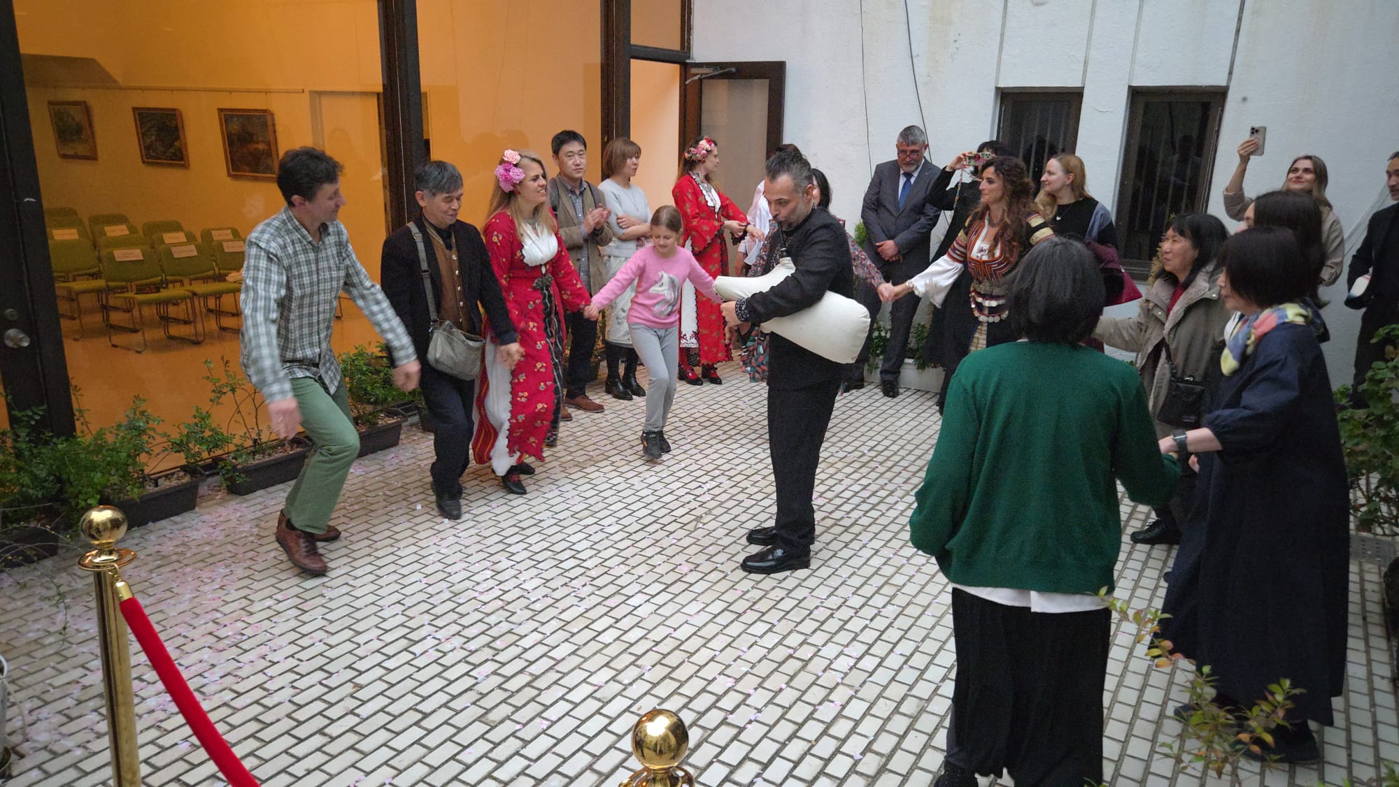 2回目の公演は、駐日ブルガリア共和国大使館にて開催され、約90名が参加しました。外務省関係者、日・ブルガリア協会および日・ブルガリア青少年文化交流協会の代表、ビジネス関係者、ブルガリアの民謡や舞踊の愛好家、駐日ブルガリア人コミュニティの代表などが出席しました。