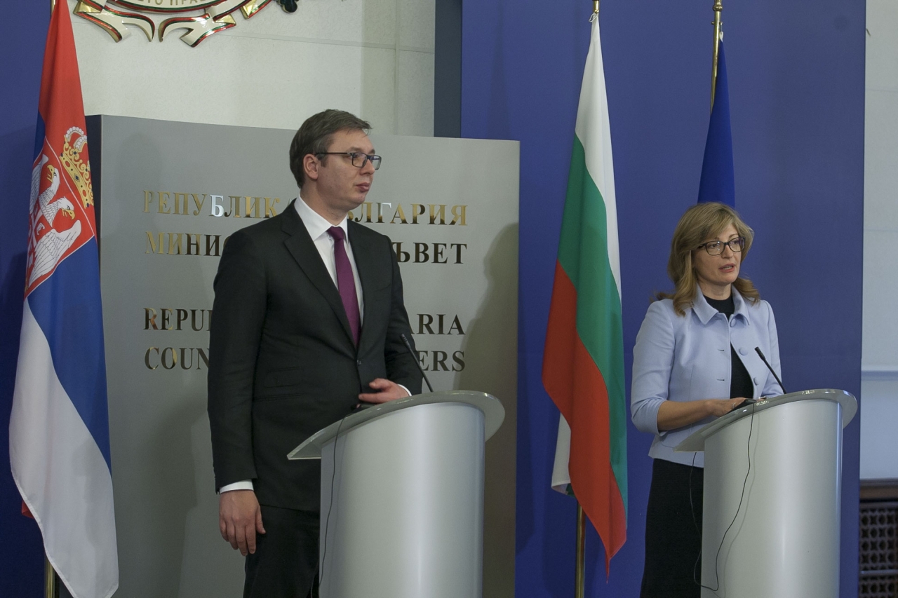 „Имаме ръст на стокообмена от 40 на сто за миналата година и ръст от 14 на сто на туристите“, отбеляза Екатерина Захариева. Тя информира сръбския президент за подкрепата, която Стратегията за Западните Балкани получи от външните министри от ЕС по време на неформалната им среща в София миналата седмица. Захариева предаде и поздрави на Александър Вучич от премиера Борисов, който днес участва в неформалния Европейски съвет в Брюксел.