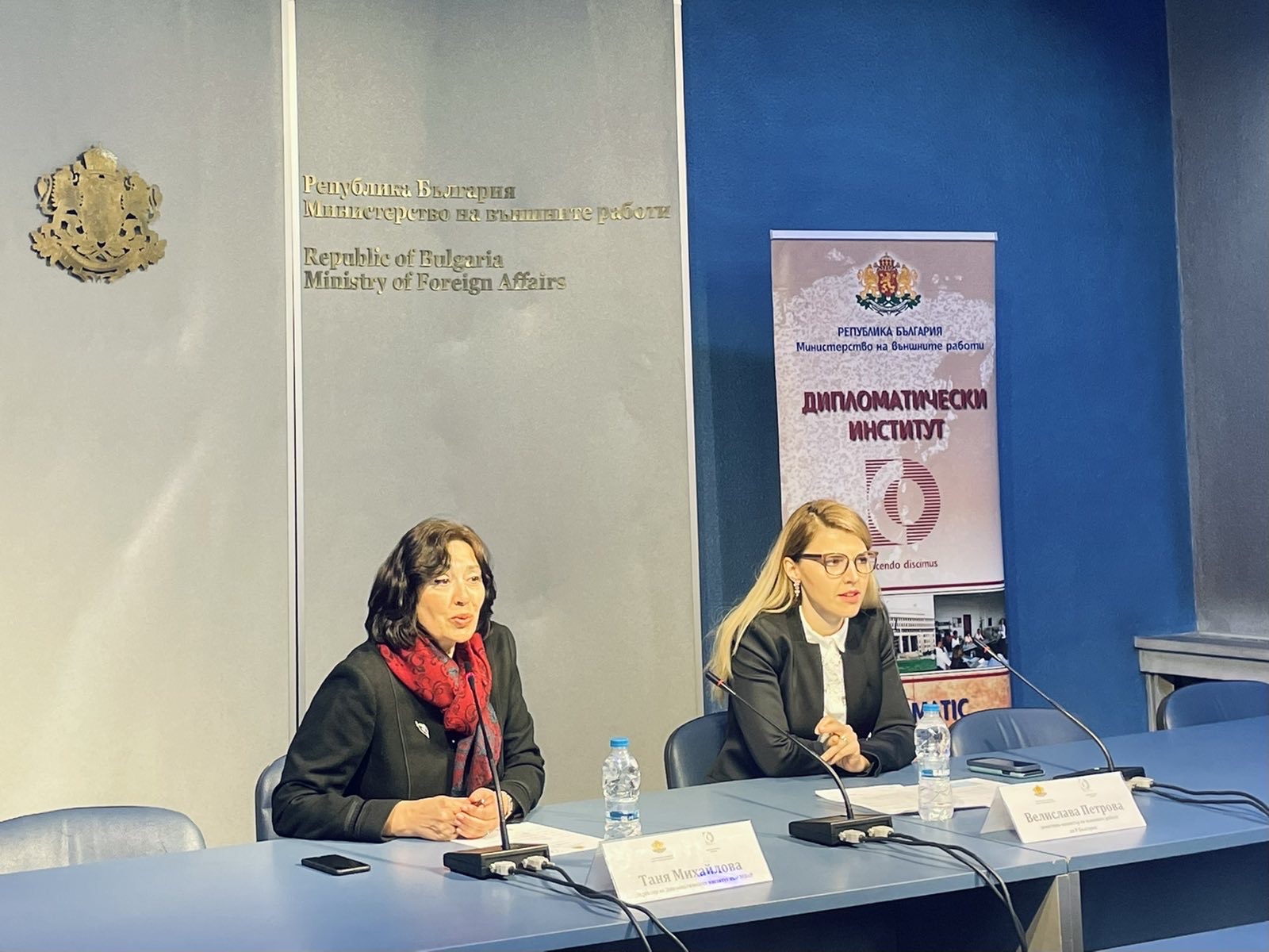 Заместник-министърът на външните работи Велислава Петрова приветства ученици от Немската езикова гимназия „Гьоте“ – Бургас с послание за по-мащабно включване на младите хора в политическите процеси у нас. Заедно с директора на Дипломатическия институт Таня Михайлова заместник-министър Петрова прие в МВнР група гимназисти, участващи в проект „Жените в политиката – ролята на жените в дипломацията“.