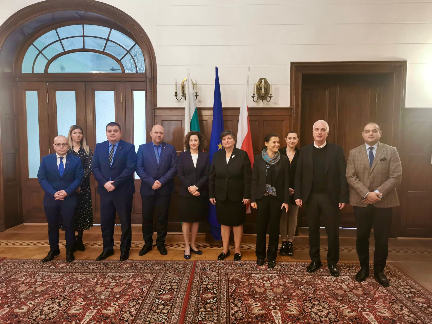 В рамките на посещението заместник-министър Димитрова и придружаващата я делегация осъществиха работна среща с посланика на Република България в Полша Маргарита Ганева и екипа на българското посолство във Варшава.