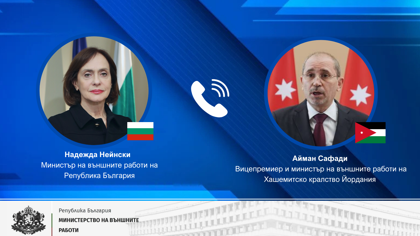 В разговора си с вицепремиера и външен министър на Йордания Айман Сафади министър Нейнски изрази солидарност с йорданската страна в настоящия критичен за региона период. Двамата се обединиха около разбирането, че Иран следва да прекрати ударите по съседни държави и да работи за деескалация на напрежението. Бе поставен акцент и върху необходимостта настоящата криза да не отклонява вниманието от ситуацията в Газа и изпълнението на втората фаза от Всеобхватния план за прекратяване на конфликта в Газа.