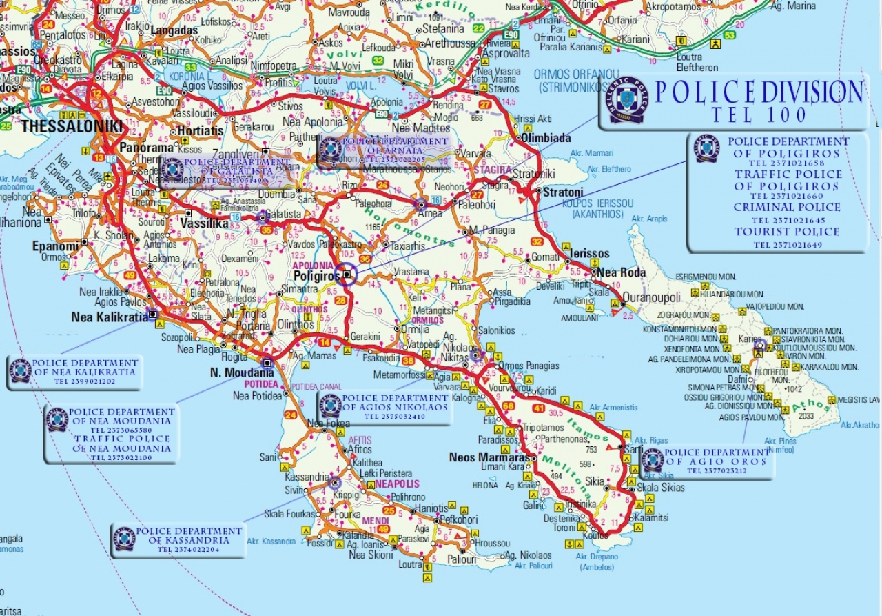 Полицейска дирекция Халкидики/ Спешен център – тел. 100 и тел. +30 2371021610