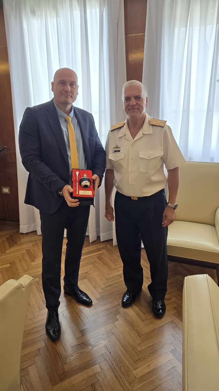 На 27 януари т.г. посланик Стоян Михайлов, придружаван от капитан I ранг проф. д-р Мирослав Цветков - зам. ректор на ВВМУ – Варна и флотилен адм. о-р проф. д.в.н. Боян Медникаров, проведе среща с Главнокомандващия на Военноморските сили на Аржентина (Армадата), вицеадмирал Хуан Карлос Ромай.