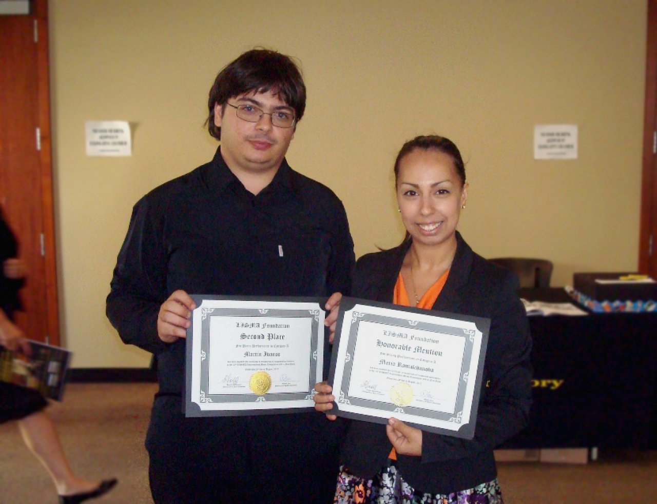 07 Октомври 2013 НовиниБългарските студенти във Виена Мария Рамълчанова /цигулка/ и Мартин Иванов /пиано/се представиха отлично на провелия се през месец август т.г. в Ню Йорк международен музикален конкурс LISMA. В конкуренция с 400 участници Мартин Иванов спечели второ място в категория „Пиано“, а Мария Рамълчанова – специална награда в категория „Цигулка“.