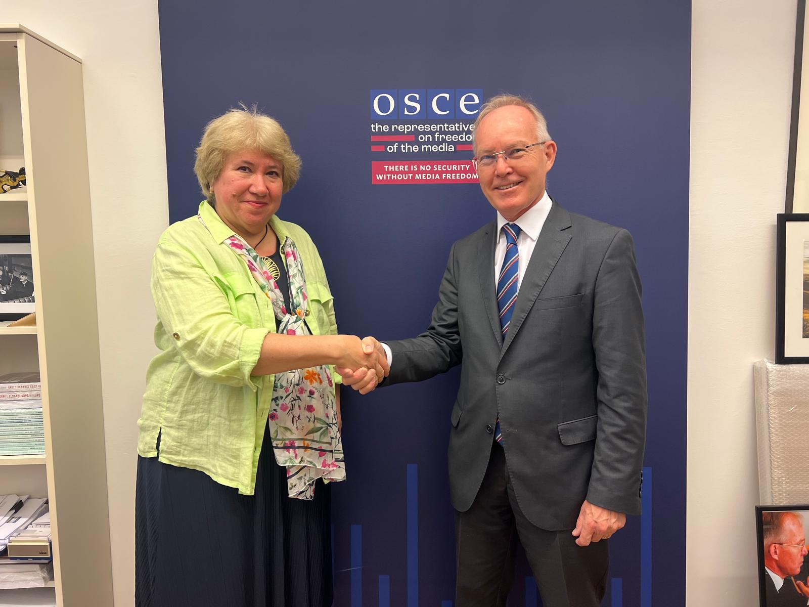 Обсъдени бяха широк кръг от въпроси от взаимен интерес, вкл. разширяване на двустранното сътрудничеството в сферата на медийната грамотност, адресиране на предизвикателствата в сектора, свързани с новите технологии и изкуствения интелект, борба с т.н. дела “шамари” (SLAPPs) и всички прояви, целящи сплашване и заглушаване на свободните журналисти, което се превръща в глобален проблем, заплашващ устоите на демокрацията в държавите от региона на ОССЕ.